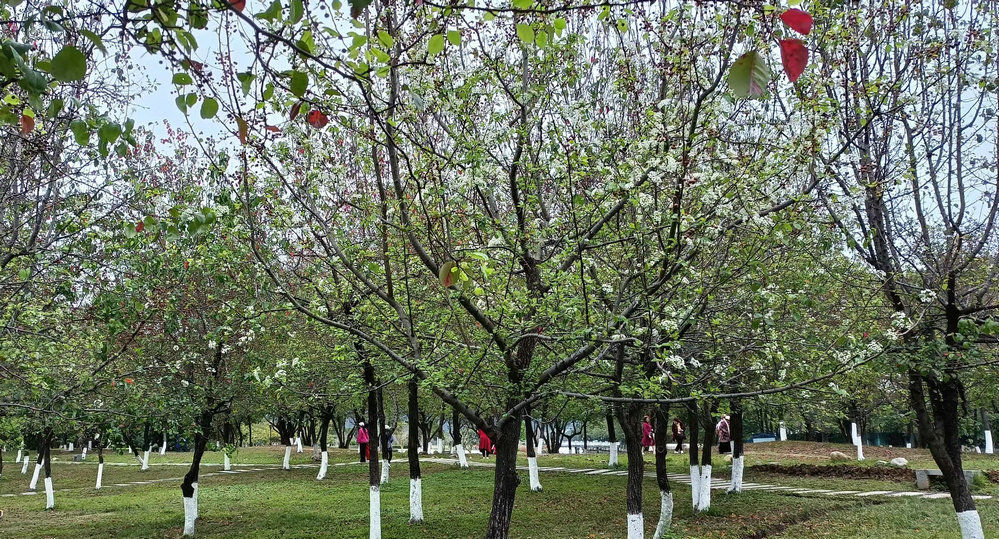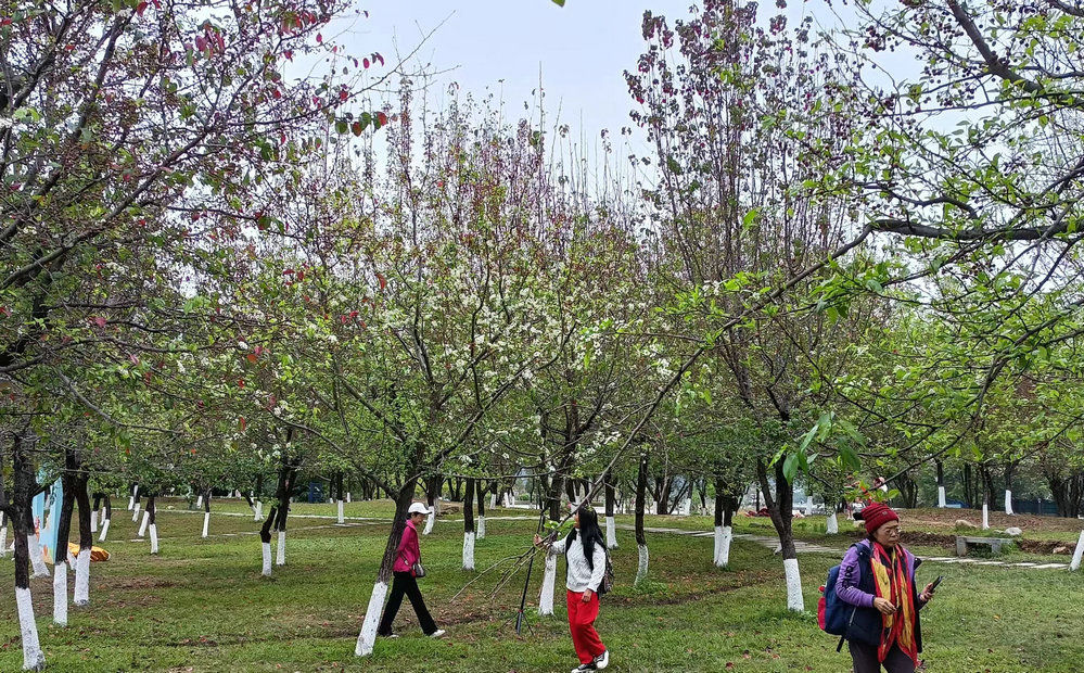 记者在牌坊公园看到,虽然目前只有少部分梨花开放,但是已经开始有不少市民穿梭于梨树林间,赏花拍照。过几天到了盛花期,一定会人头攒动,人流如潮。