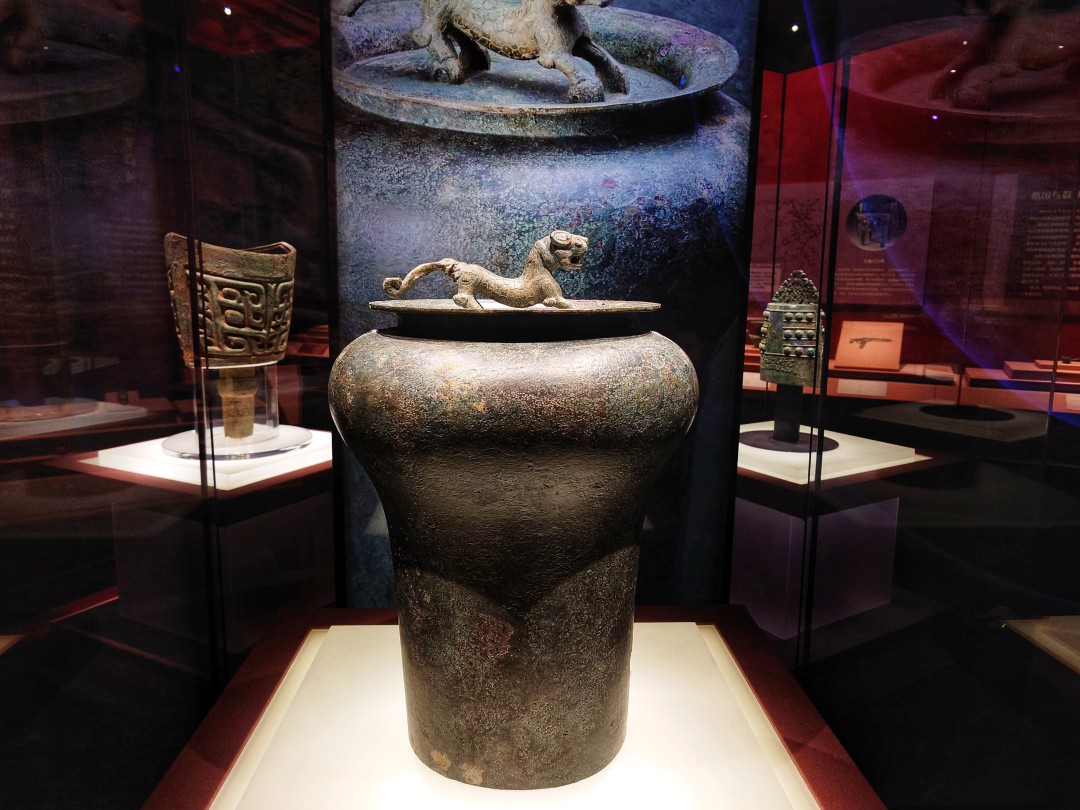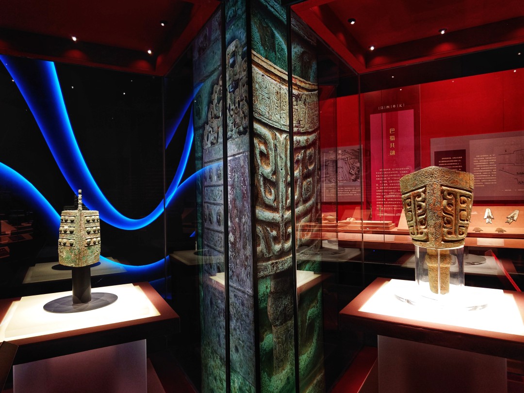 院方介绍,“共饮一江水——长江流域青铜文明特展”以长江流域上、中、下游的地域文化为主线,集中展现了商周时期巴蜀、荆楚、吴越三大文化圈既独具气质、风格各异,又相互交融、相互促进的文明气象。展览由“巴蜀并辉”“群雄竞华”“多元一体”“天下归一”四部分构成:第一部分“巴蜀并辉”将三星堆遗址、金沙遗址、新都马家木椁墓等东周时期墓地和墓葬群为代表的古蜀文明置于长江流域的视野下进行解读,多角度展现巴蜀文明的神秘与独特;第二部分“群雄竞华”,以商王朝南下的首邑和军事重镇盘龙城遗址为起点,揭示一方诸侯王国的赫赫威仪、荆楚风土的奇谲浪漫、吴越先民的尚舟善武,凸显长江中下游地区青铜文明的鲜明特色;第三部分“多元一体”,将长江流域青铜文明纳入以中原地区二里头文化为文明核心的中华文明多元一体化格局进行分析比较,诠释海纳百川、开放包容的长江流域青铜文明和长江、中原两个区域文明异彩纷呈、交流互鉴的特点;尾声部分“天下归一”,讲述了秦灭六国,天下归一,风云千年的长江流域青铜文明融汇在华夏主体文明之中这一沧桑巨变。