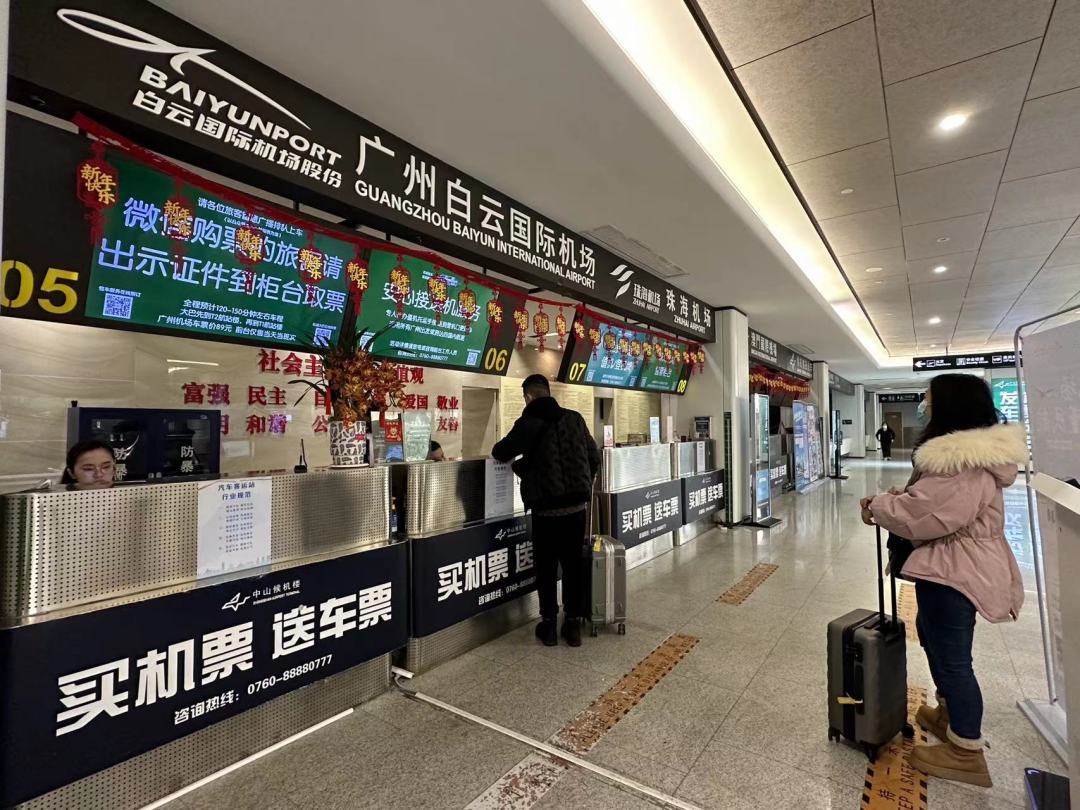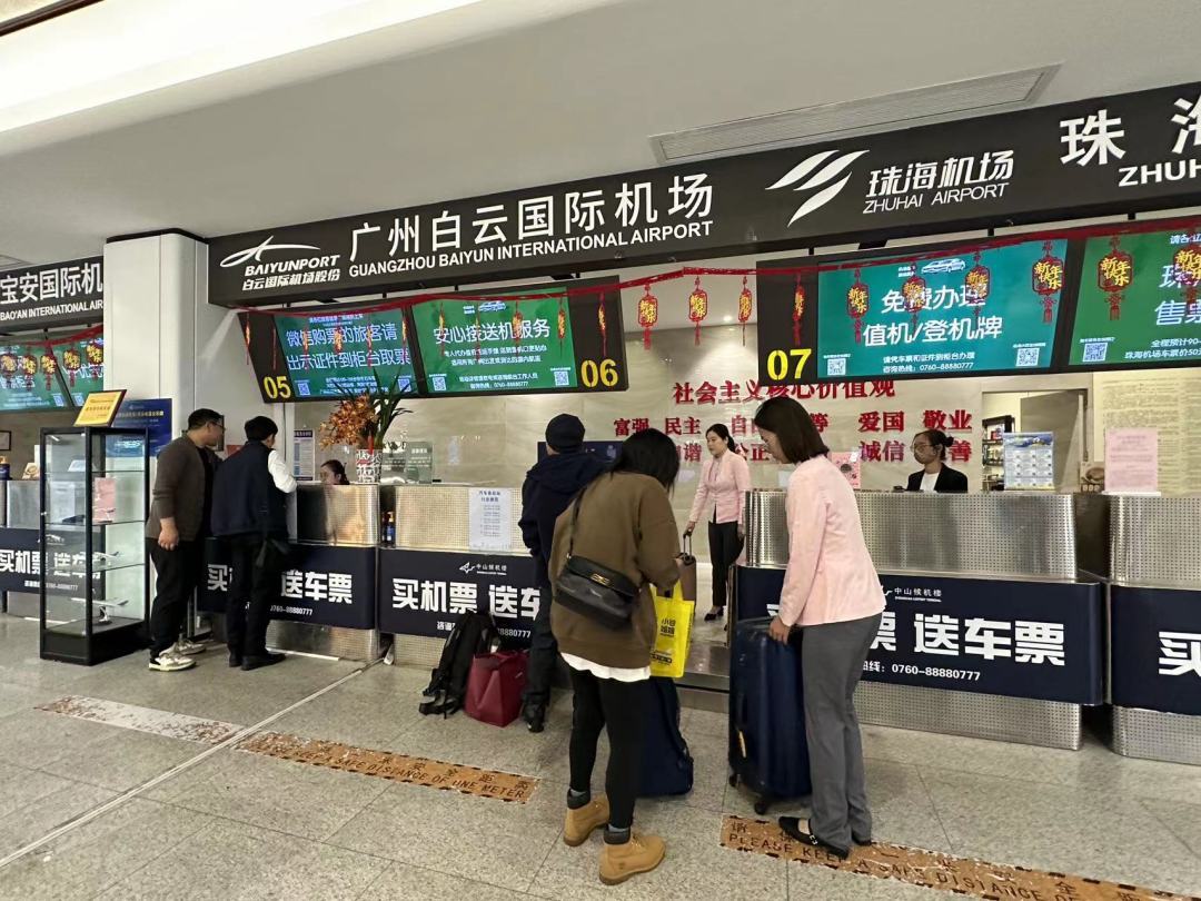 2月6日,广州日报·新花城记者来到广州白云机场位于湾区最繁忙的城市候机楼之一——中山懿峯城市候机楼,感受旅客们过年归家的喜悦以及城市候机楼的特色“春风服务”。