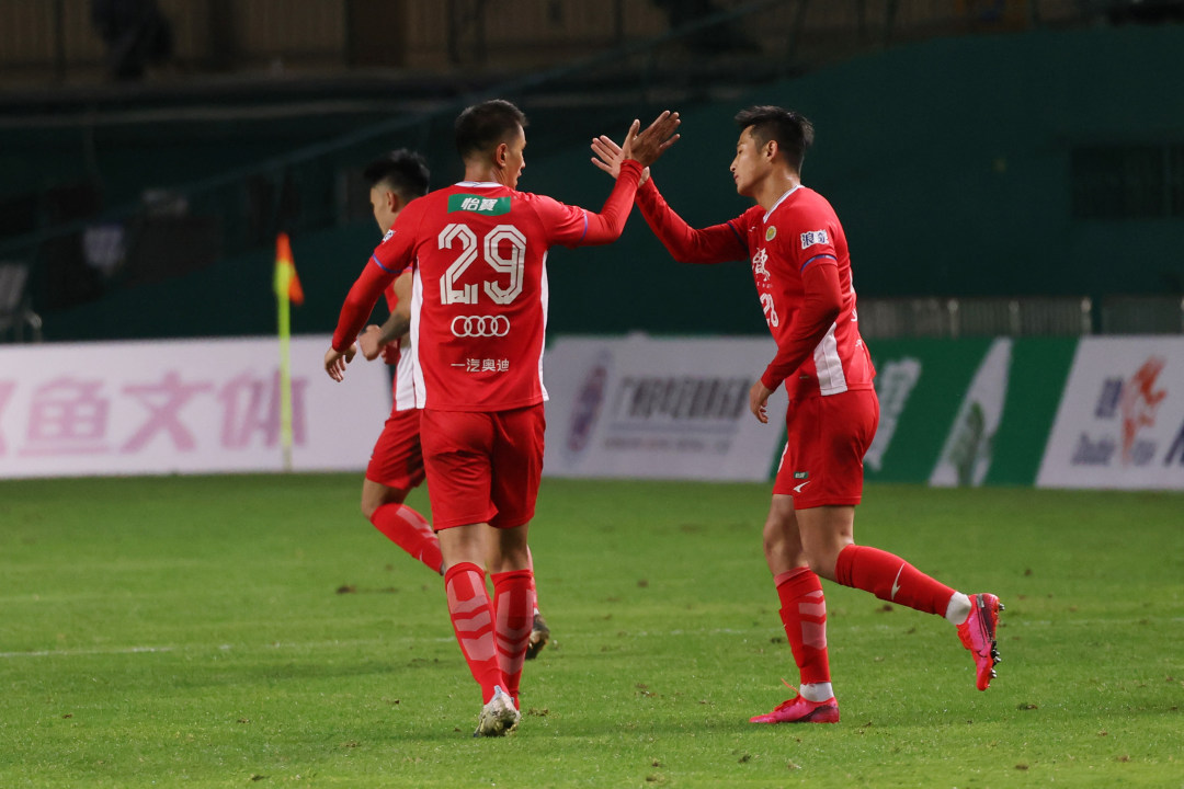 广东队进球后击掌庆祝