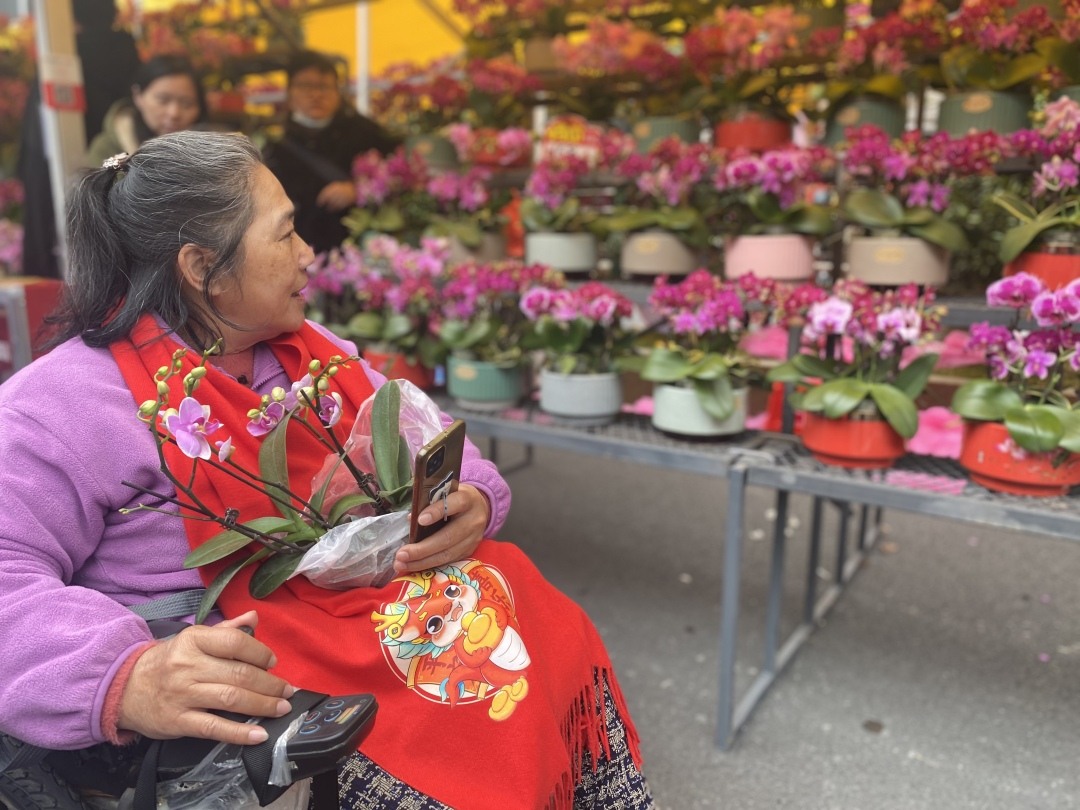 长者们很多都是本地老广州街坊,他们走在熟悉的道路上,欣赏着美艳的年花,见到熟悉的志愿者,仿佛回到很多年前,沉浸在美好回忆当中。