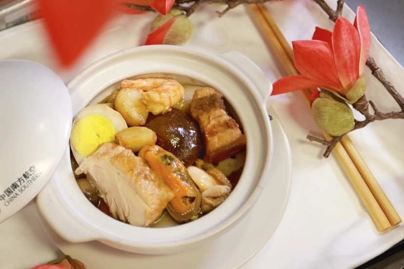 在哈尔滨返回广州的航班上,常年在外工作的旅客陈先生主动向工作人员表示:“在回家的路上能吃到盆菜这种家乡味,这‘年味’一下子就浓了,感谢你们的用心!”
