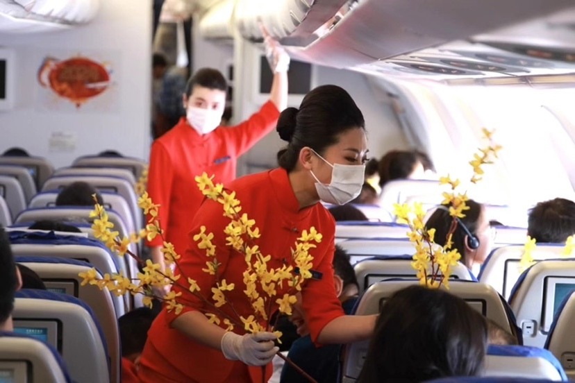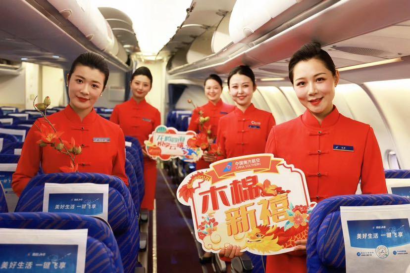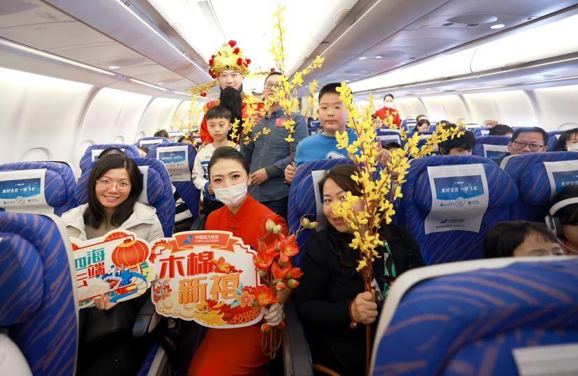 2月4日,南航在广州至哈尔滨的往返航班上开展“木棉新禧”迎新春主题航班活动,把岭南传统的迎春花市和广府年夜饭的重头戏大盆菜搬到万米高空,营造喜庆祥和的节日氛围,为旅客送上新春的温暖祝福。