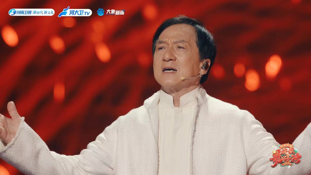 在极富科技感与中华文明色彩的置景空间中,成龙唱响《中华力量》,铿锵豪迈,立即调动观众情绪。