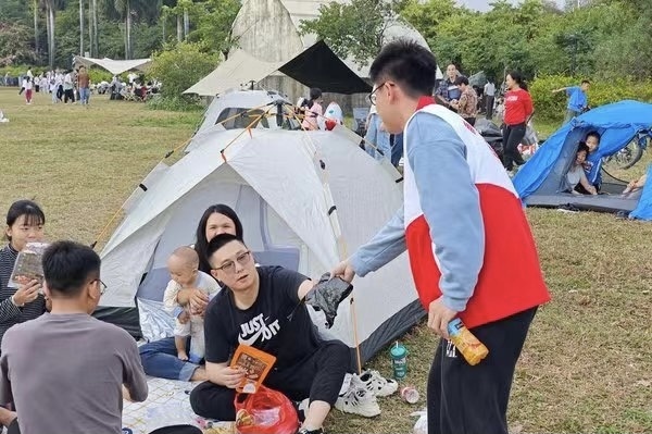 据万丹琛介绍,中心每天在线上和群里已收到上百市民在春节假期的预约帐篷服务,不过,为了规范露营秩序,中心每天对预约帐篷采取限量免费服务。同时倡导市民在春节假期文明出游、文明露营,用双手托起文明的光环,用实际行动让广州大学城变得更加美好。