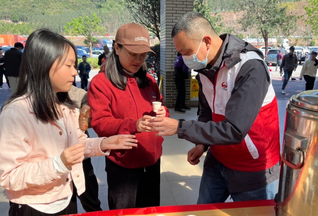 “今天天气冷,喝杯姜茶暖暖身子吧!”自“清澈的爱,温暖回家路”志愿服务活动启动以来,潮惠高速党员先锋踊跃下沉一线,为出行的旅客递上一杯热茶,为归家的游子送上一句亲切的问候。