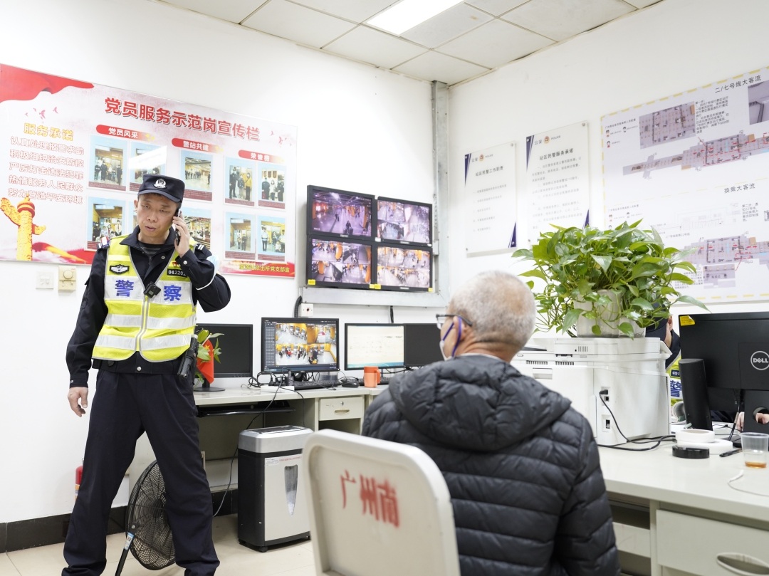 “最多的是群众求助,走丢小孩的,不见身份证的,不见手机的,快要发车了却找不到方向出地铁站的……这些情况每天都发生。”警务室民警李春说道。他是广州市公安局公共交通分局厦滘派出所民警。从警18年,今年是他参加春运工作第8年。