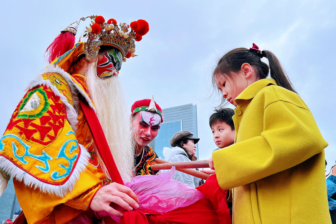 广大市民游客在观赏演出之余,还与潮阳龙井行祠庙忠精英歌队进行热烈的现场互动,进一步拉近与非遗演出队伍的距离,增进对非遗民俗文化的了解。忠精英歌队队员感慨:“广州的人们太热情了。”