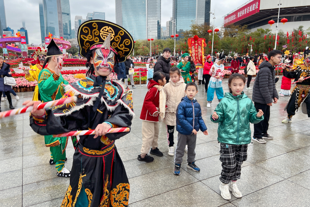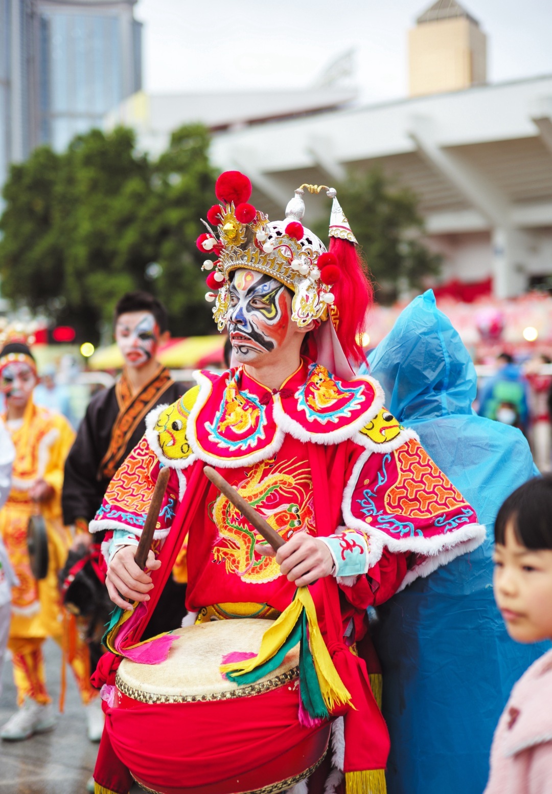 “我们昨晚便提前开始绘制脸谱,今早6点乘车出发前来天河。除了传统的脸谱,还特意创作了‘花漾’‘天河’的脸谱,呼应‘花漾天河年味龙’的天河花市主题。”潮阳龙井行祠庙忠精英歌队队长陈振建介绍,1996年成立的潮阳忠精英歌队,在潮阳英歌中独具特色。队伍以传承、发扬中国优秀传统文化为根本宗旨,始终坚持以“爱国忠国、功夫精湛”的理念培养一代代忠精队员,是一支传承潮汕传统文化的非营利性队伍。