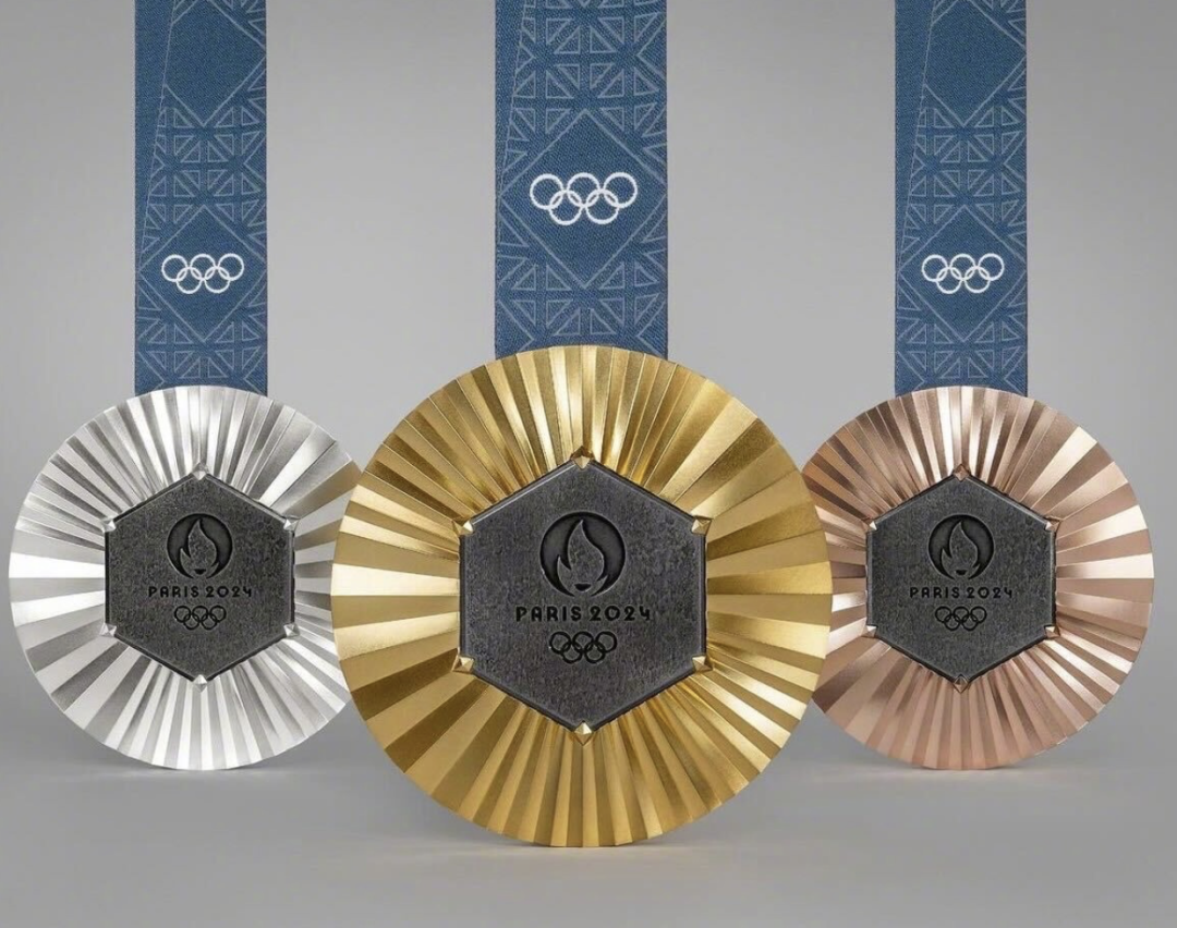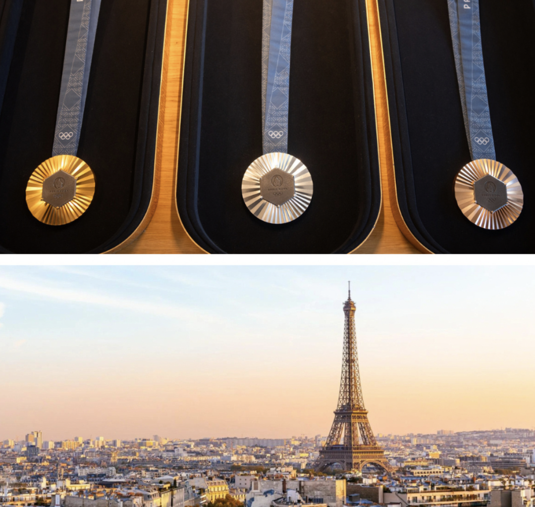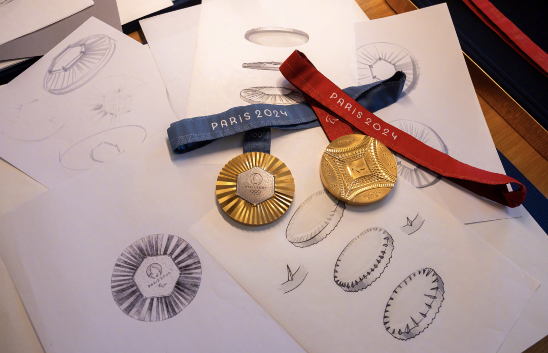 巴黎奥组委今天在巴黎公布2024年巴黎奥运会和残奥会奖牌设计样式。每一枚奖牌均镶嵌着一块六边形的埃菲尔铁塔原始建造材料。
