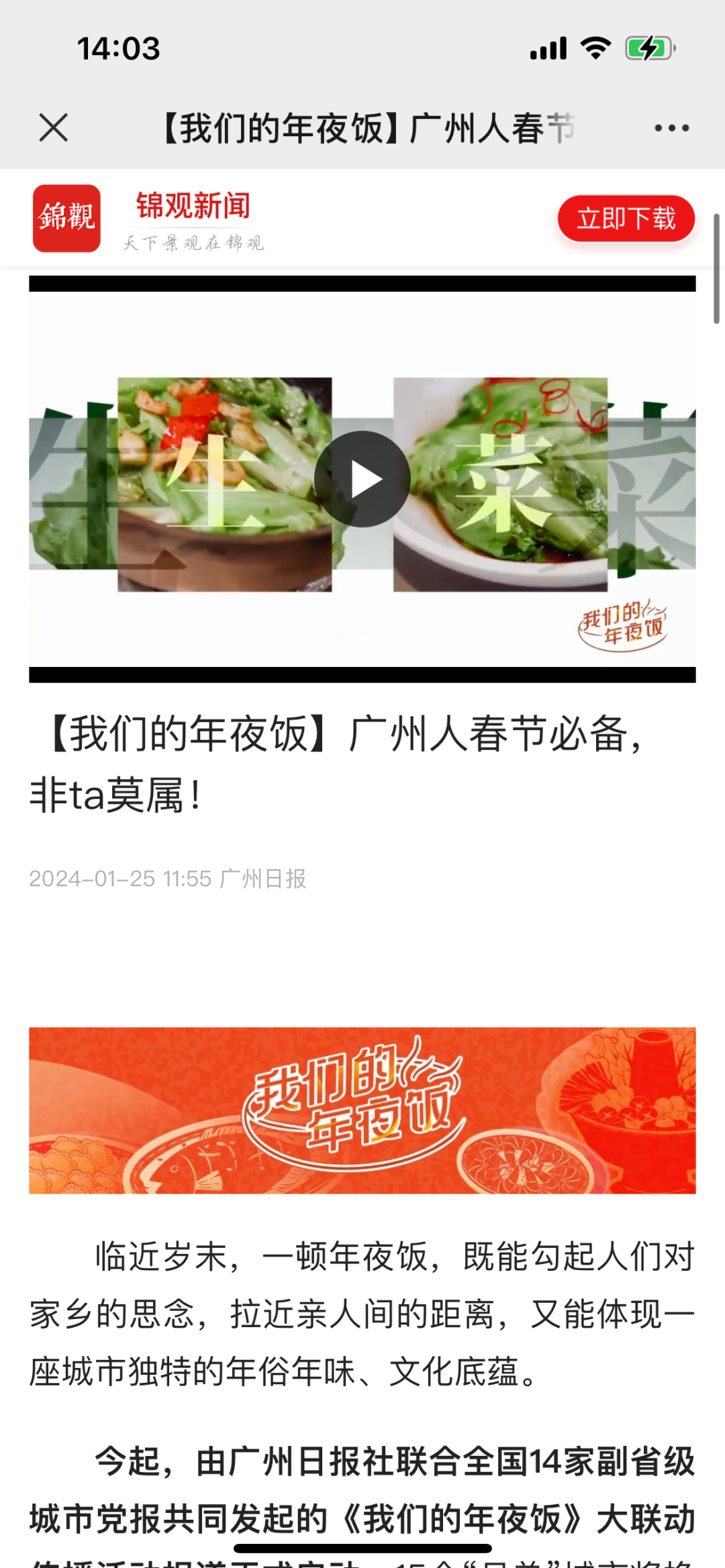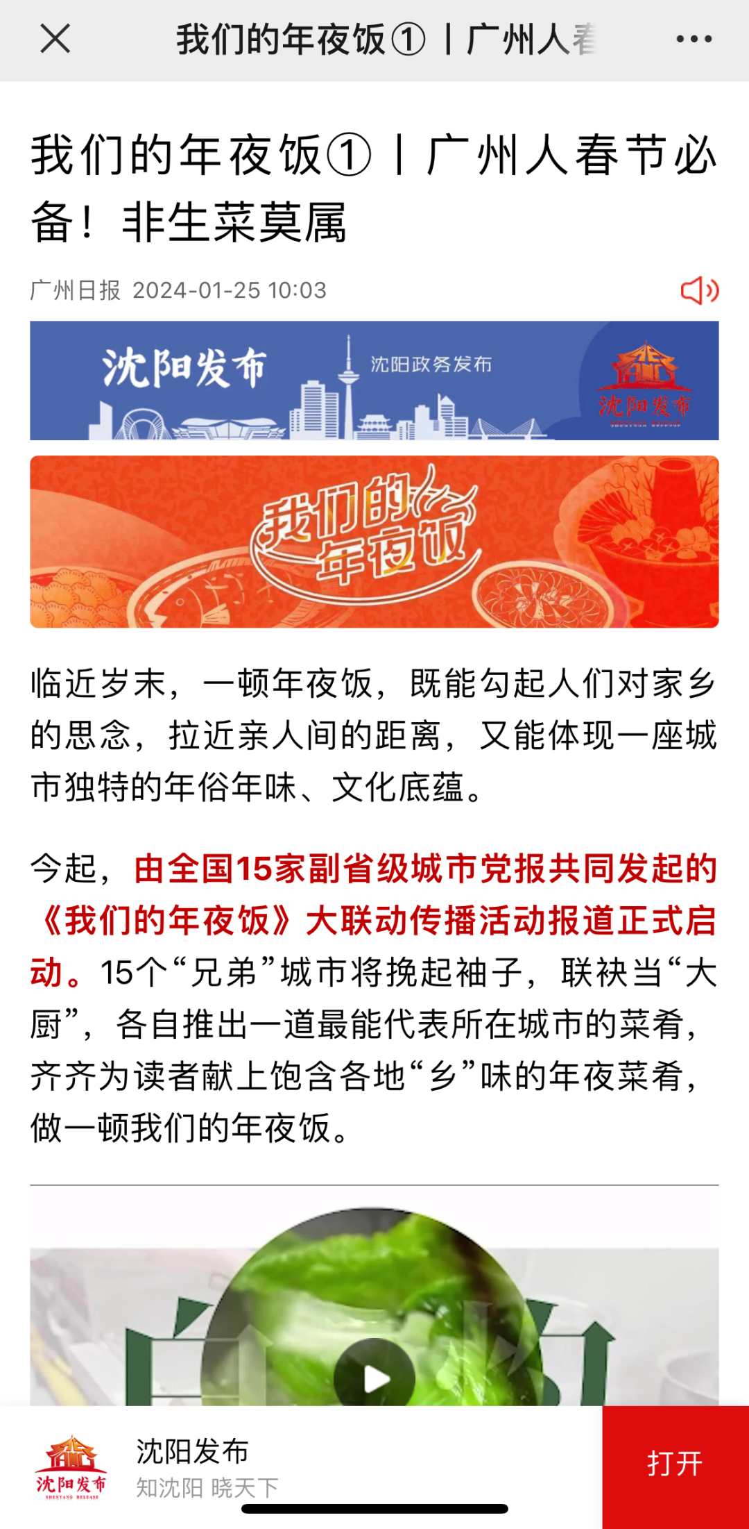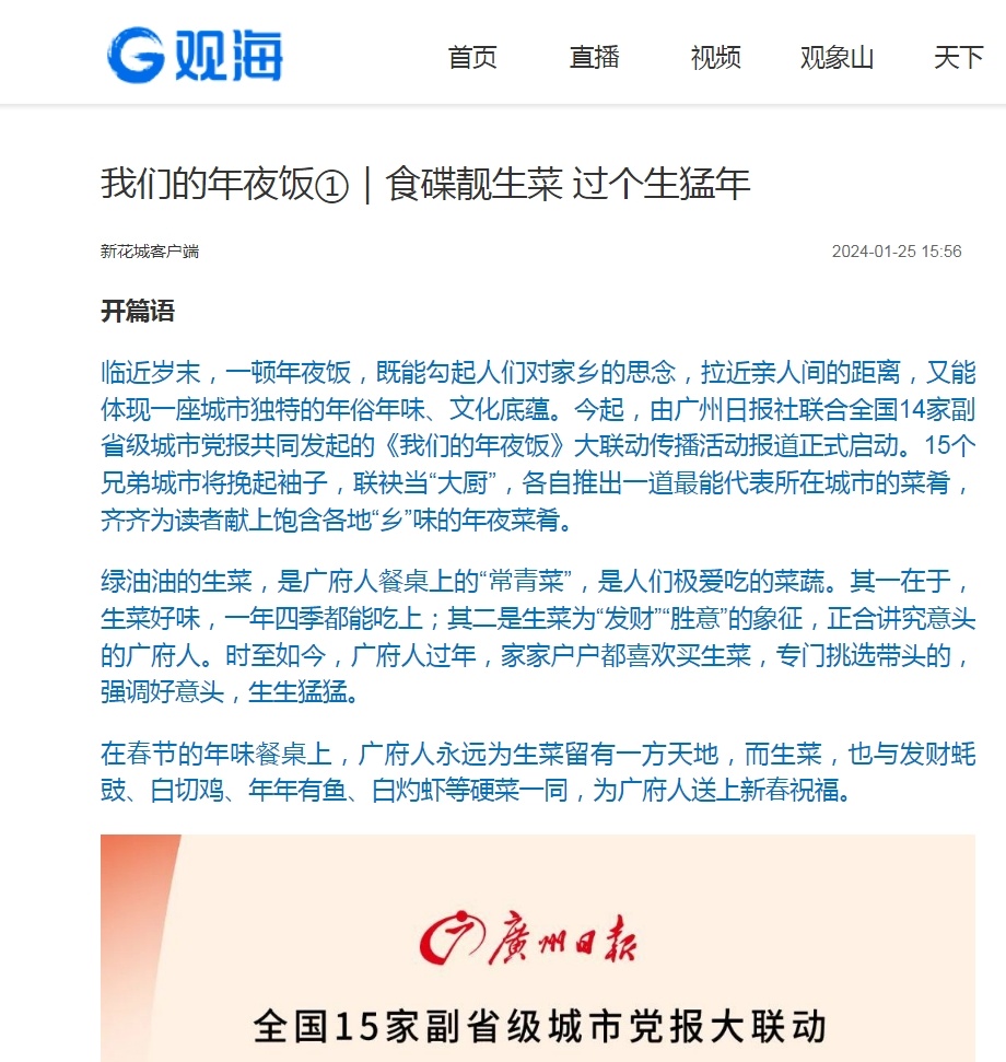 搭配在新媒体稿件中的短短一段45秒短视频,道出广府人对生菜独特的爱,也是广府人对新春的祝福。