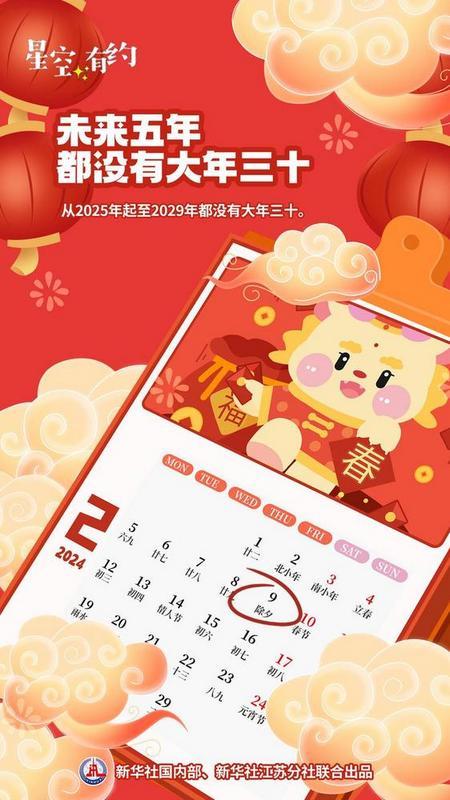 2月9日将迎来大年三十。翻开日历你会发现,2024年是未来几年中最后一个有大年三十的年份。2025年至2029年的5年里,都没有大年三十,大年二十九过后,就将迎来大年初一。大年三十去哪儿了?为什么大年三十会时不时“玩消失”,大年初一从不“缺席”?