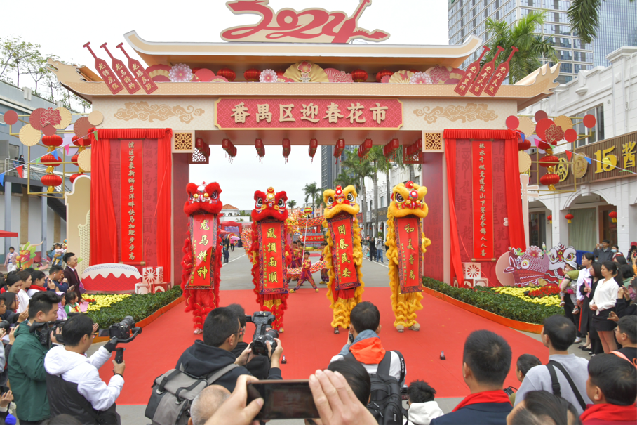 「珠水千帆競蓮花山下賽龍奪錦人人喜,灣區萬象新獅子洋畔快馬加鞭步步高」,門牌樓上的這副新春對聯為「點睛之筆」,寓意勤勞勇敢的番禺人民以時不我待的精神狀態、競標奪先的奮勇姿態,滿懷喜悅拼搏前行。不為人知的是,該對聯是由菲爾茲獎首位華人得主、中國科學院外籍院士丘成桐書寫。丘成桐院士祖籍梅州市蕉嶺縣,為番禺區對口幫扶地。兩地的文化交流在2024年番禺區迎春花市結出美麗的「花朵」,共鑄起深厚的山海情誼。