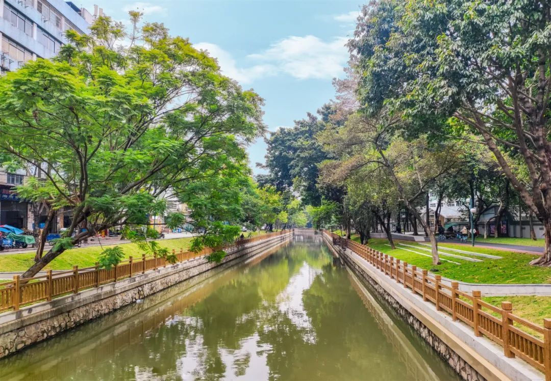 本次改造,共开辟各类主题性滨水广场11个,优化改造亲水平台7个,新增和翻新滨水栏杆3540米,绿化美化水岸3540米,增设坐凳1980米,设置遛鸟廊道200米,打开滨水空间约3万平方米,极大改善了河涌生态,为市民营造了更加安全舒适的滨水环境,成为宜居、宜业、宜游、宜学、宜养的城市生活空间。