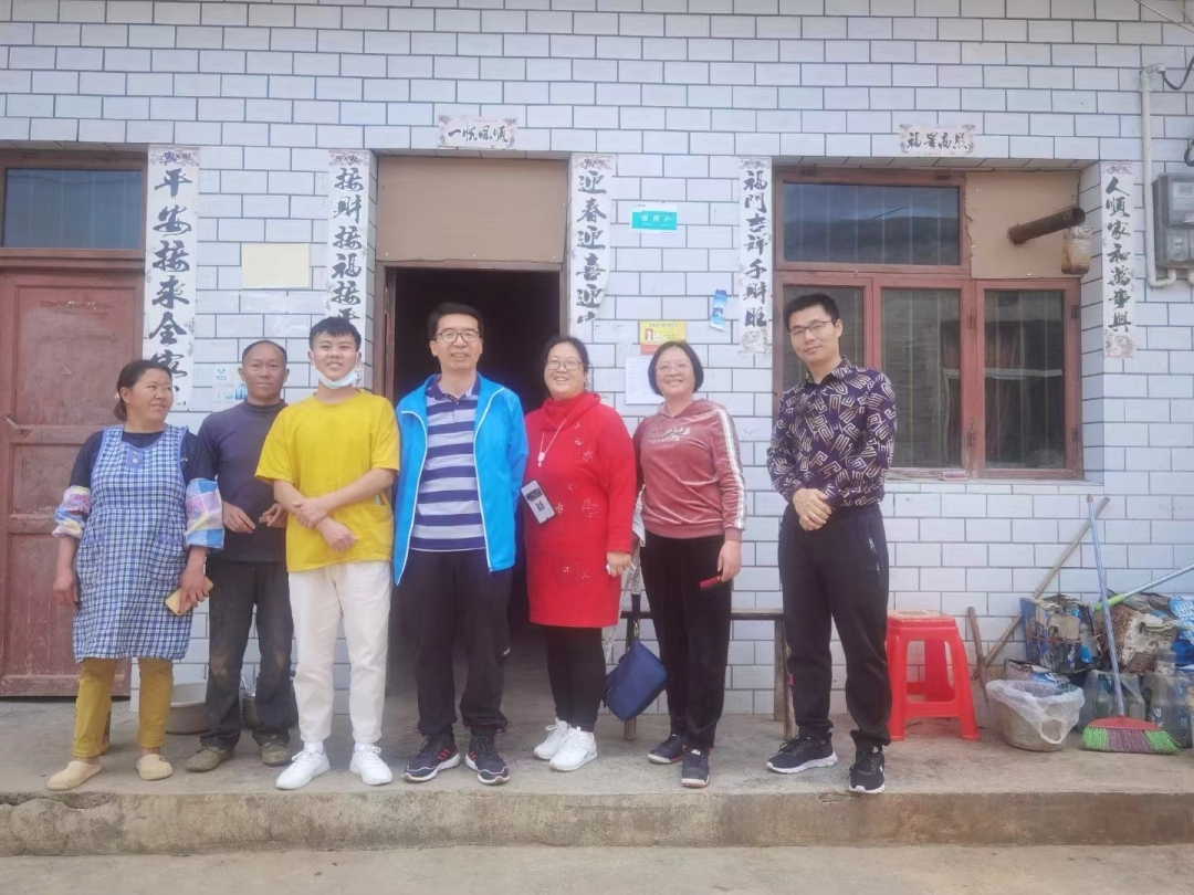 图:杜海军(中间蓝衣服者)、苏永华(右一)、肖海英(右三)走访织金三中学生杨天鹏(左三)家。(受访者供图)