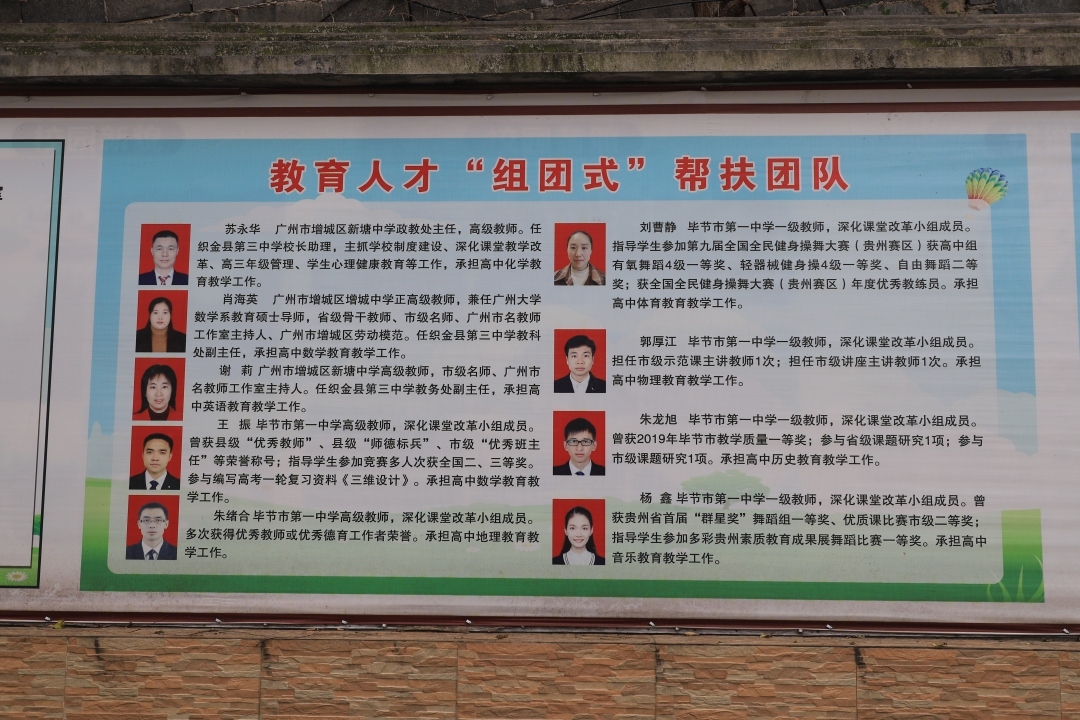 图:织金三中校内的“组团式”教育帮扶宣传栏。