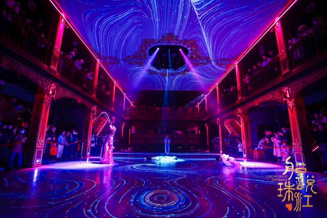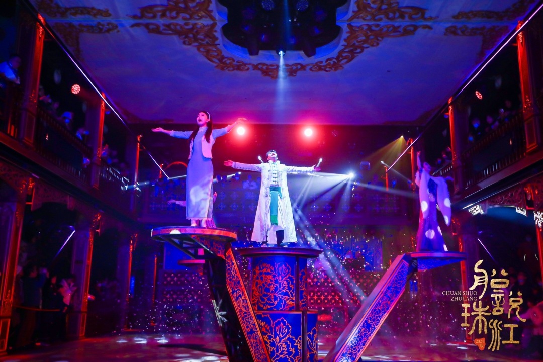 “游客不必束缚于固定座位上,可在船内随意走动,楼上楼下任意穿行,自由穿梭每个角落,既可夜赏珠江美景,又能融入戏中剧情,与演员互动,与主角共情,仿若回到百年前的民国洋场,真实地参与了红船戏班上的一场爱恨纠葛。”作为《船说珠江》总导演,国家一级编导、中国舞蹈家协会理事邢时苗介绍道,此次《船说珠江》最大的亮点就是沉浸式的观看体验,致力于带给观众一场难忘的视听盛宴。