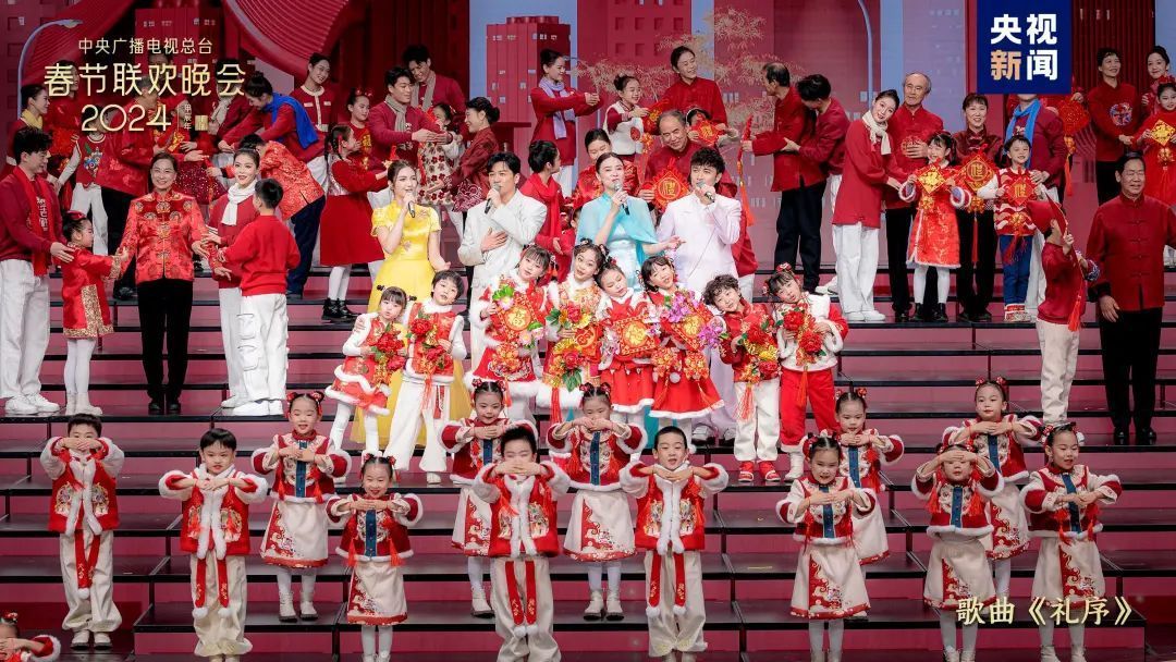 歌曲《礼序》中,古巨基、苏有朋、宋佳、麦嘉欣与小朋友们通过“礼”这一中华民族共通的文化符号,唱出携手同心、共赴团圆的美好期许。《永恒的诗篇》传唱柯尔克孜族、蒙古族、藏族的民族史诗,苍劲有力,响彻广袤大地,书写辽阔土地上的生生不息。