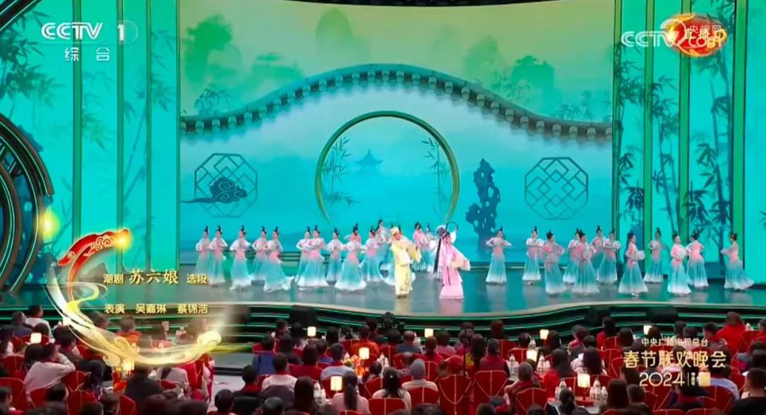 “蝴蝶年年花间舞,愿扑蝶人儿永成双……”2月9日22时23分,被誉为“南国鲜花”的潮剧首次登上中央广播电视总台《2024年春节联欢晚会》。两位来自广东潮剧院的青年演员吴嘉琳和蔡锦浩在戏曲节目《百花争艳》中,你唱我和,配合默契,演绎经典潮剧《苏六娘》选段“花园订约”,让海内外观众通过荧屏欣赏“潮汕版梁祝”,领略潮剧魅力风采。