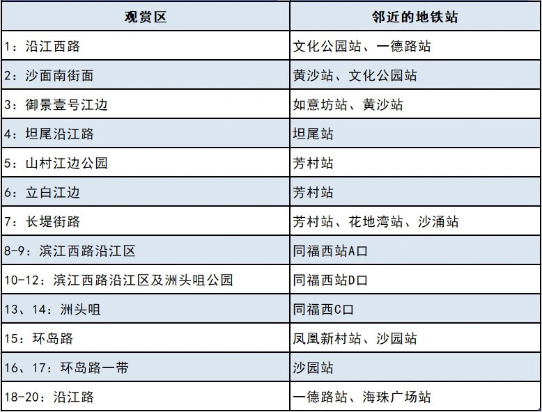 2月10日(大年初一)20:00-20:45,广州将在白鹅潭举行烟花汇演。广州地铁提醒,接政府部门通知,为配合烟花汇演活动,2月10日18:30-20:45,一号线芳村站停止对外服务;黄沙、如意坊、文化公园、同福西站客流较大,车站将根据现场实际情况采取客流管控或“飞站”(列车不通站通过)措施,乘客遇地铁飞站时请在邻站下车从地面前往。