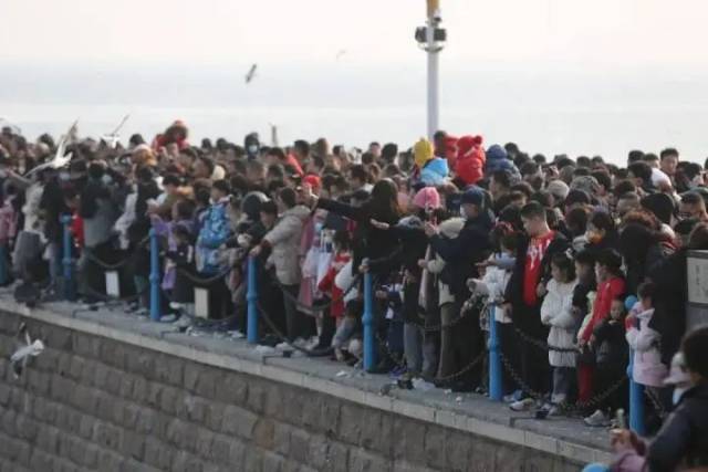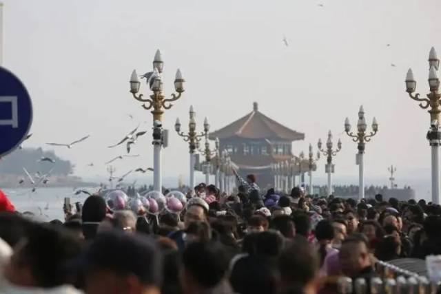 2月10日大年初一,青岛知名景点栈桥,人挤得是里三层外三层,有网友戏称:“去年的今天我还有站在栈桥上被人踩掉鞋的权利,今年只能站在老远干瞪眼了。”
