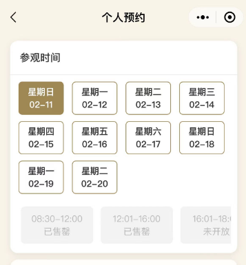 据悉,三星堆博物馆春节期间,继续实行全员实名分时段预约参观机制:第一个时段08:30-12:00、第二个时段12:00-16:00,两个时段可提前10天预约,每天20:00放票。第三个入馆时段15:30-18:00,当日15:00放票。