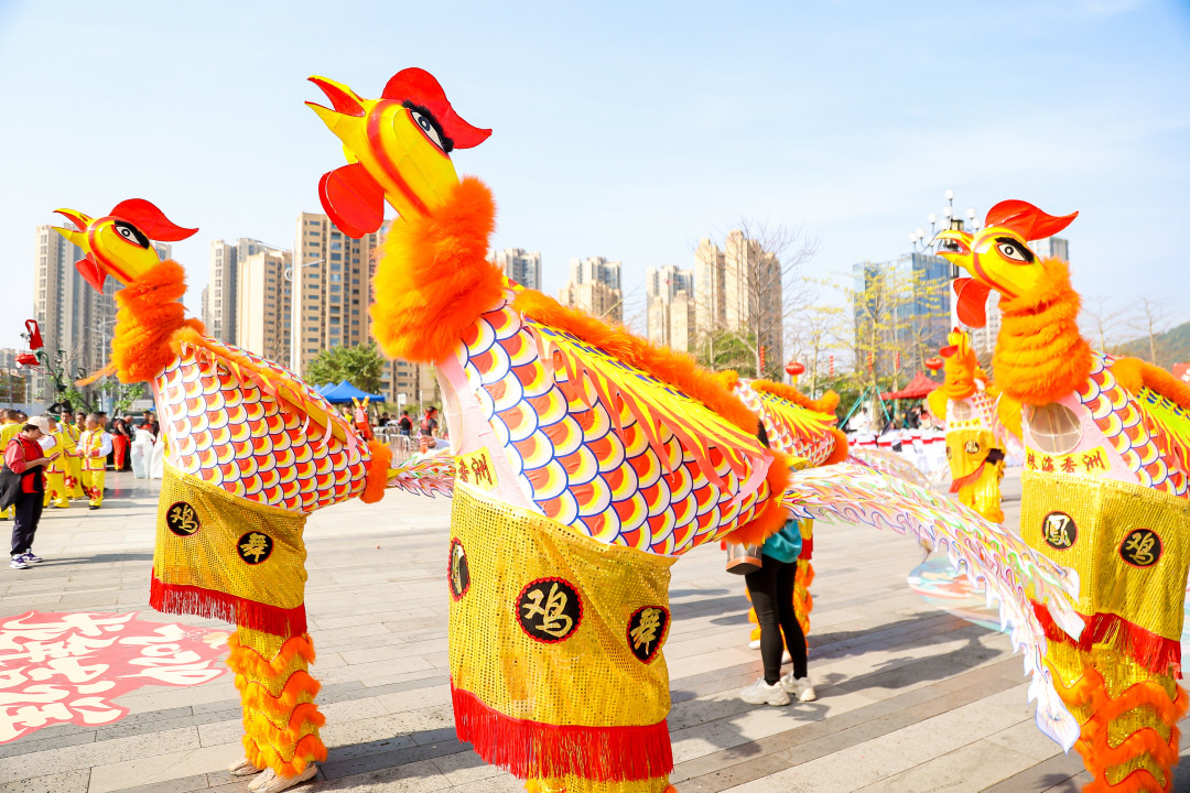 舞龙、醒狮、飘色、凤鸡舞、鹤舞、粤剧……好一场民俗风情汇演!今天(13日)是正月初四, 珠海市龙年新春非遗民俗大巡游在斗门上演,包含16个非遗民俗方阵和1个市民群众方阵,超千名演员同台献艺,约2万市民游客现场同赏精彩。