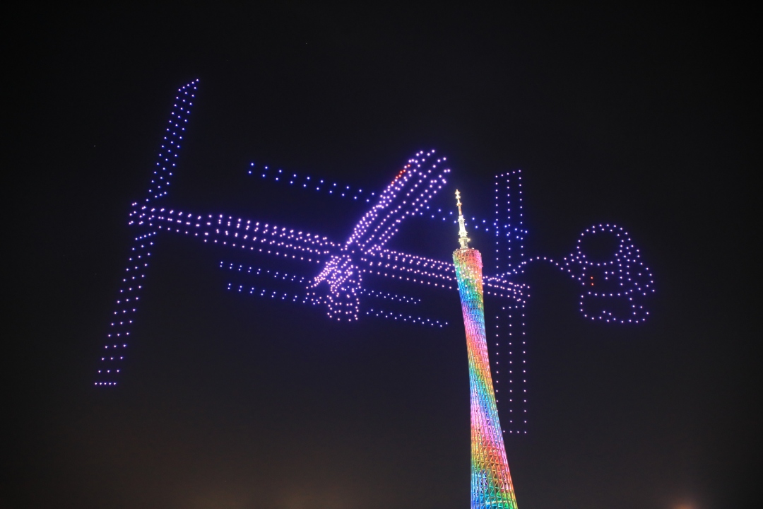 最后,在广州旅游主题曲《广州天天在等你》的歌声中,无人机表演渐入尾声,天空中定格“广州欢迎您”字样,为连续两日的无人机表演活动完美收官。