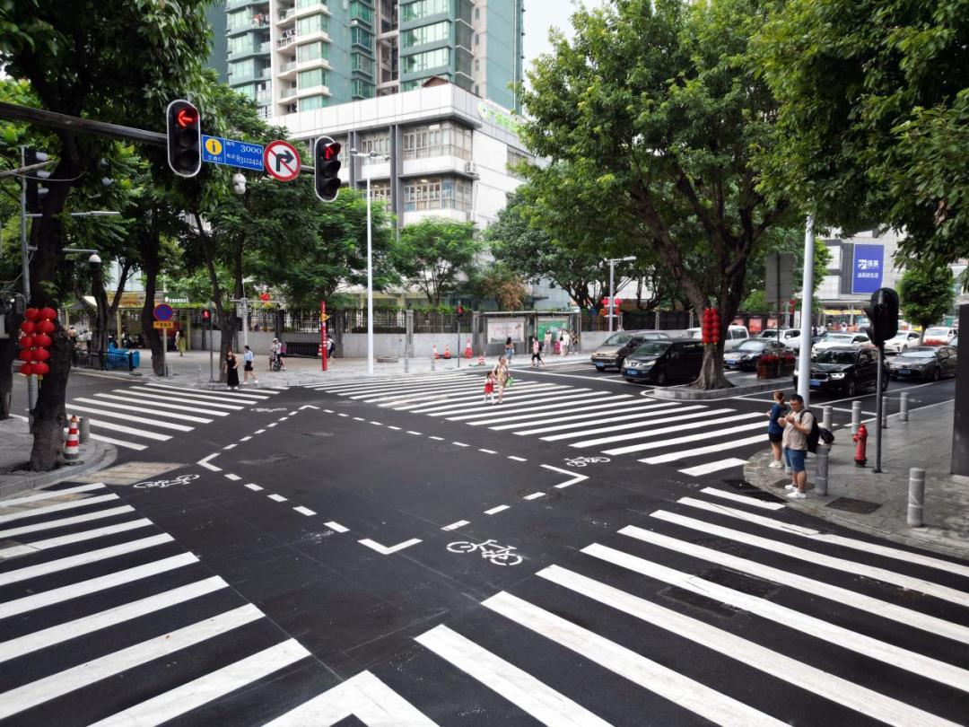走在西关永庆坊景区,从华贵路到宝华路,再到丛桂路、恩宁路、龙津西路,放眼望去,崭新的沥青路与古朴的建筑呼应。经过升级改造后,不少老旧路焕然一新,坑洼的路面变得平整油亮,黄白相间的行车标线清晰明了,破损的人行道被修复、拓宽,马路两边还设置了非机动车专用道,极大保障了行人日常出行的安全和便捷。