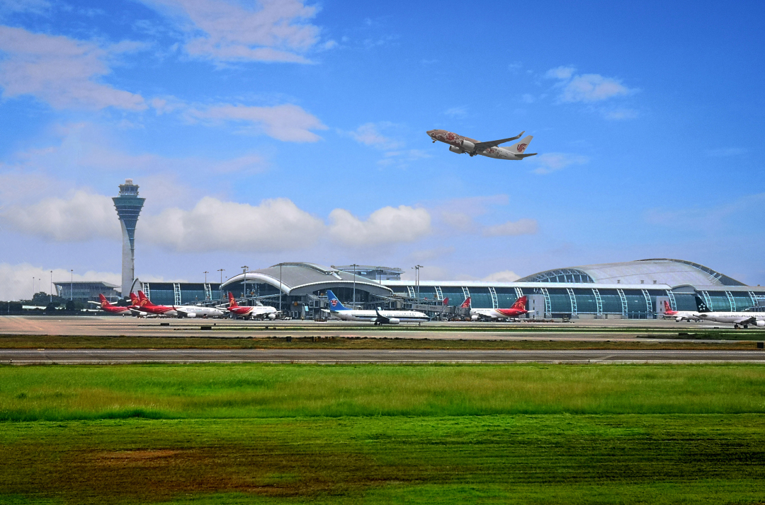 春光正好,清晨的白云国际机场一派忙碌景象,一架架客机迎着朝霞飞向蓝天。