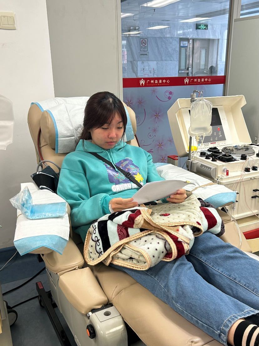 梁女士从上大学开始就每年坚持献血,从一开始献全血到后来每年都会献成分血。目前她已经献了1400毫升全血和3次成分血。她表示,在春节期间这个特别的节日里能帮助到更多有需要的人,就觉得这个年过得很有意义。
