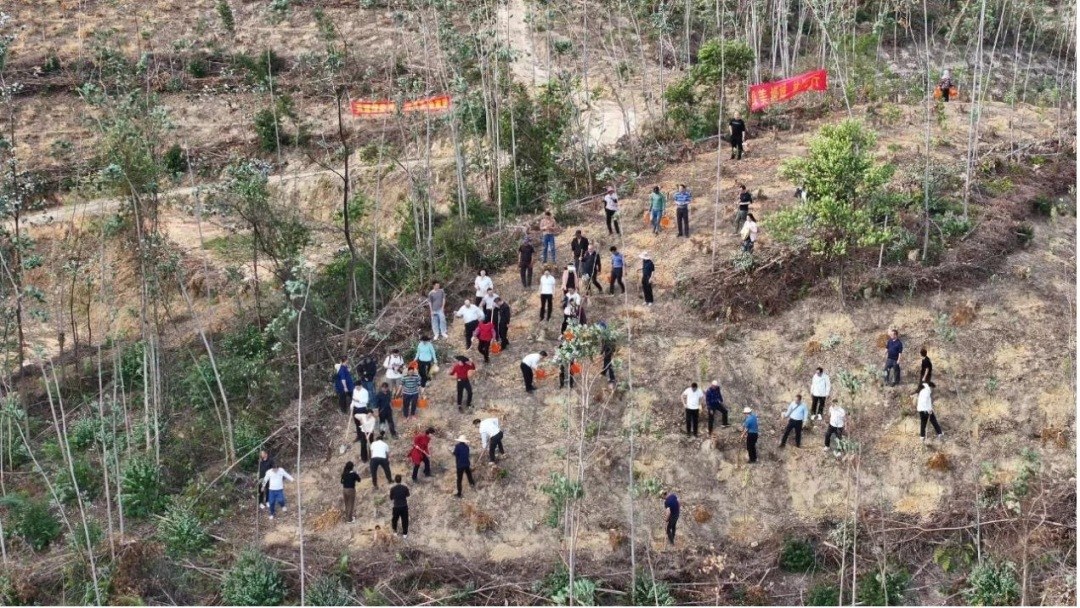 在植树现场,大家热情高涨、干劲十足、相互协作,有的挥锹铲土、培土围堰,有的提水浇灌,有的扶树正苗,合力栽下红锥、浙江润楠、闽楠、木荷、铁冬青、樟树等乔木共4440株。新种植的树苗迎风挺立,呈现出一派生机勃勃的景象。