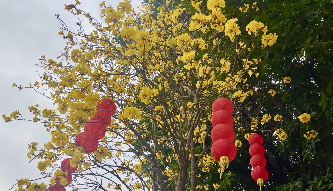 在新春气氛烘托下,满树黄花显得格外喜庆