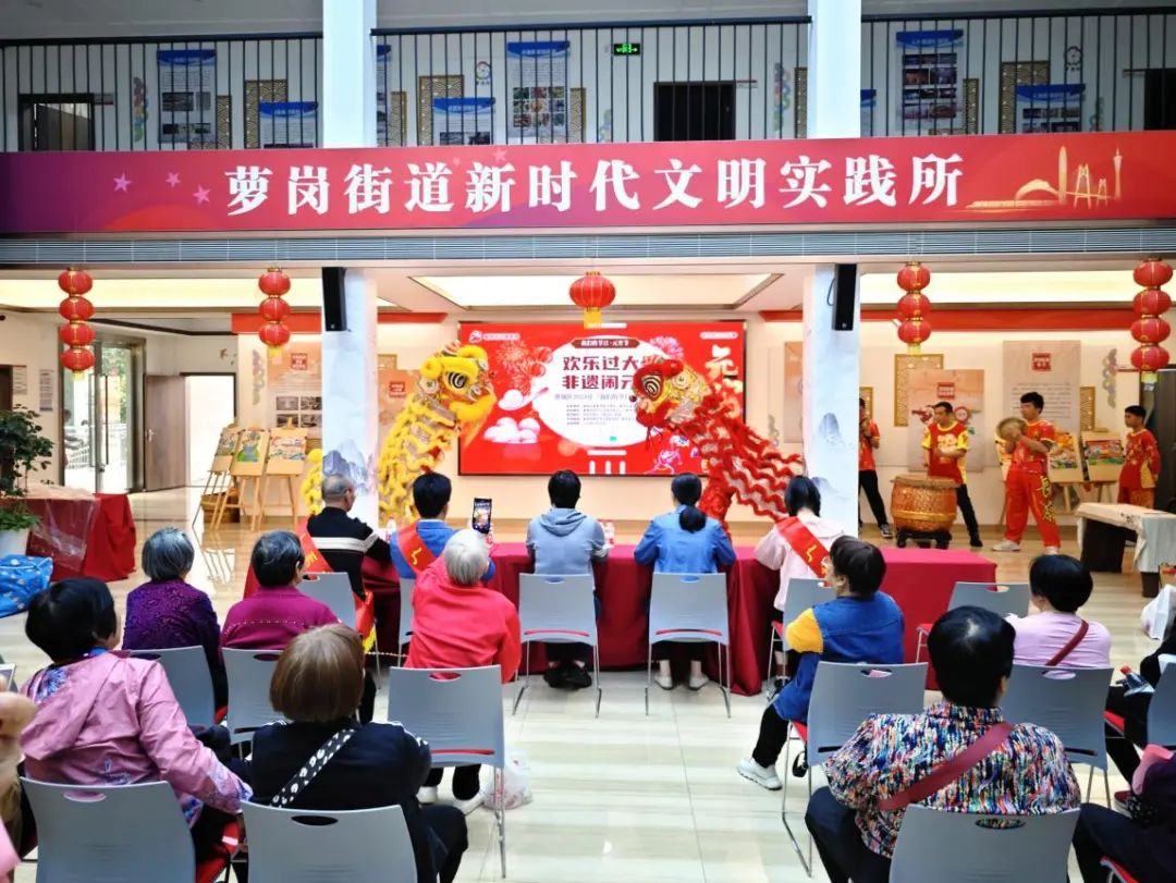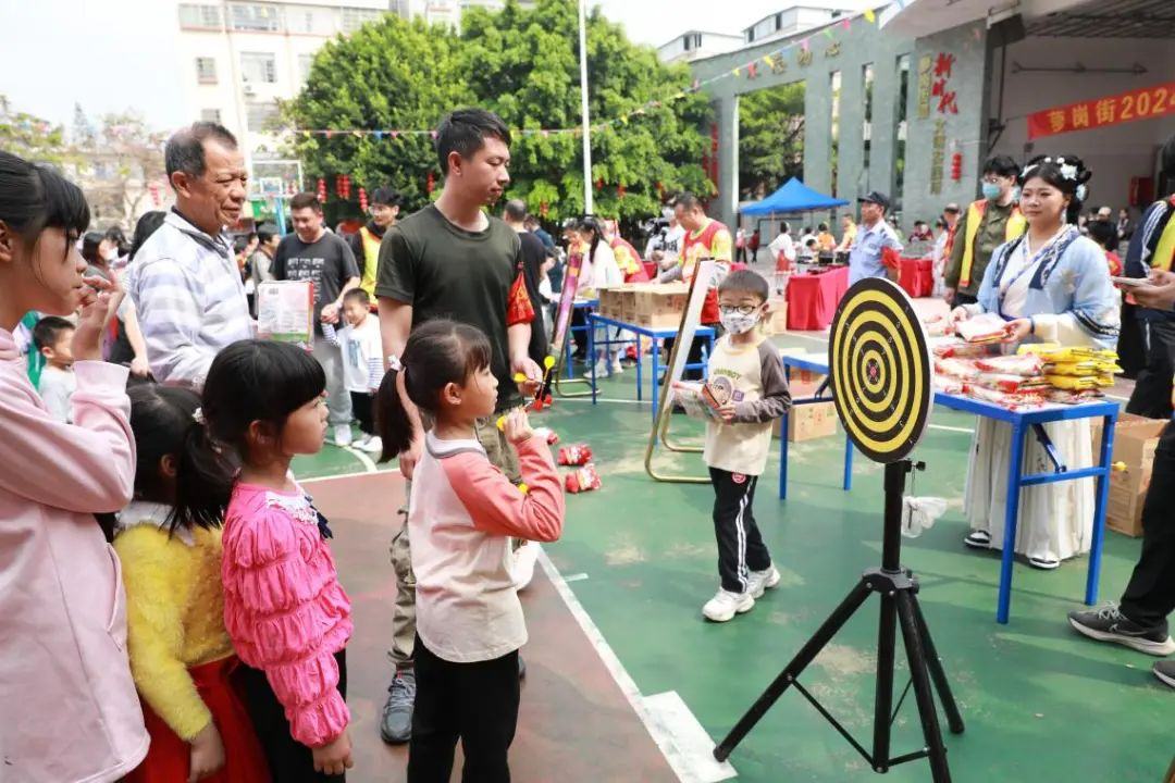 除了场内精彩的表演,室外场地还接连上演了互动游园、非遗巡游和龙狮起舞,引得围观市民叫好连连。其中,寓意吉祥又老少皆宜的趣味游园活动吸引了广大居民群众和外来务工人员参与,大家乘兴参与,满载而归。