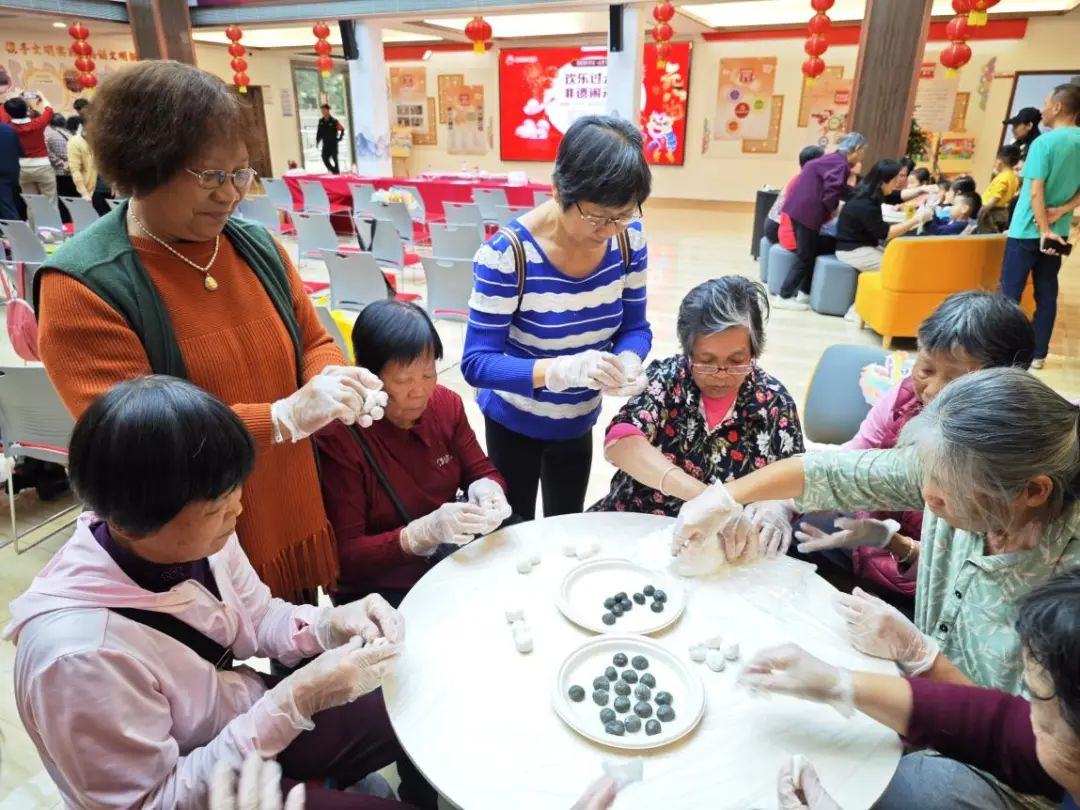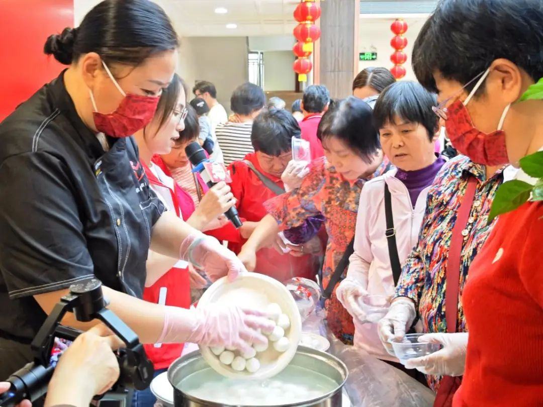 作为历史悠久的传统节日,人们常常以猜灯谜、吃汤圆、赏花灯等方式迎接元宵节的到来。室内舞台表演结束后,领导嘉宾与市民群众围坐成4个大桌,在厨艺老师何敏的指导下共包汤圆。“搓糯米团时不要用太大力气,搓圆后按扁再放入馅料……”何敏一面向大家讲解搓汤圆的步骤,一面示范制作汤圆。不一会儿,圆溜溜的汤圆便摆满了4桌。