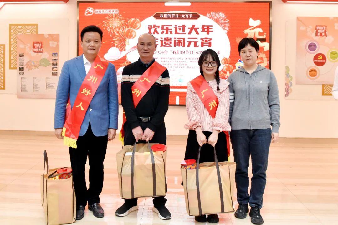 好人故事传千里,元宵慰问送真情。长期以来,黄埔区扎实开展“身边好人”和道德模范的选树、培育、宣传、帮扶等工作。活动现场,黄埔区委宣传部、文明办为“广州好人”代表送上了元宵节的慰问,激励市民群众见贤思齐、崇德向善,引领好人事迹成为文明潮流。