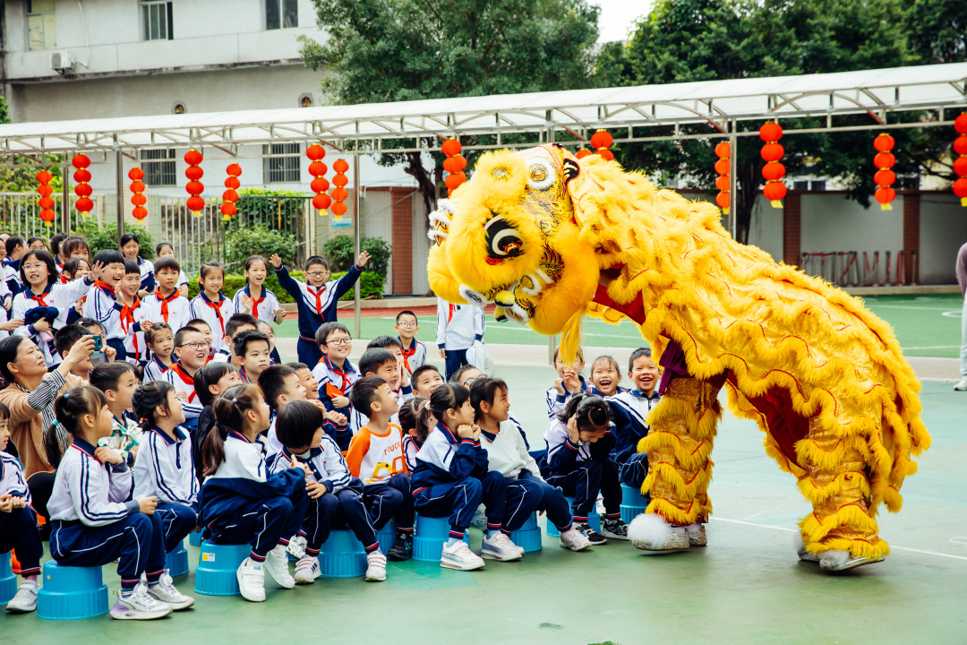 “摸摸狮子头,万事不用愁”!在欢快的锣鼓声中,舞狮队在各班教室、教师办公室之间巡游,把平安、健康、聪慧传遍校园的每个角落,祝福师生们新一年身体健康、工作、学习顺利。
