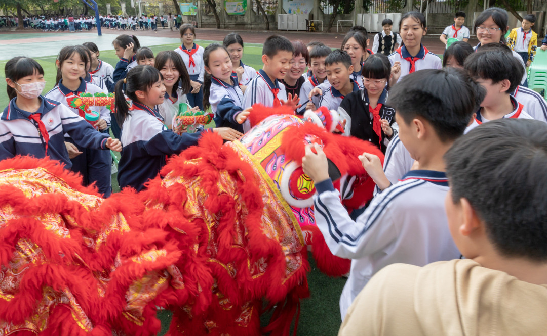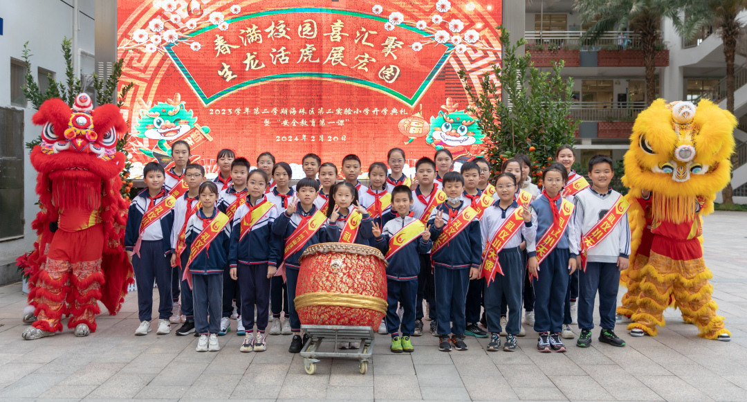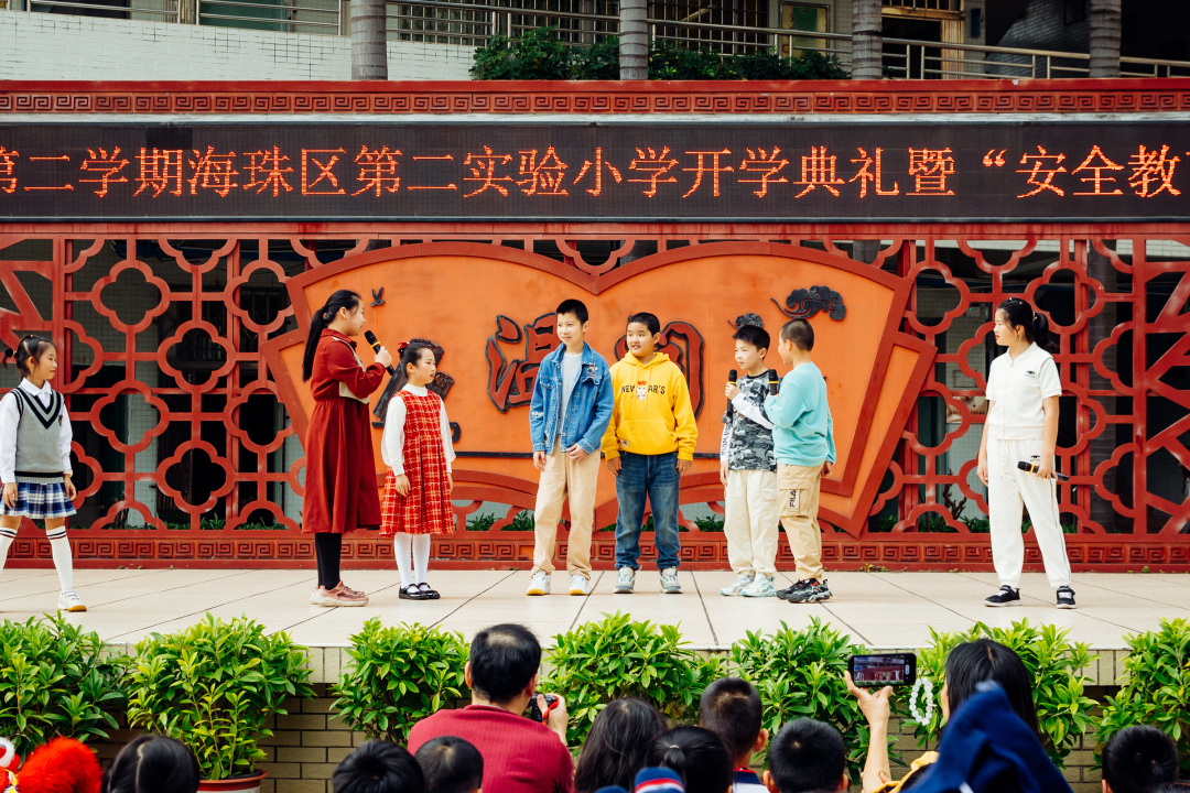 2月20日,广州市海珠区第二实验小学举行“春满校园喜汇聚 生龙活虎展宏图”2023学年第二学期开学典礼暨“安全教育第一课”,孩子们展现了多姿多彩的社团学习成果,大家一一接过装满师长“爱与祝福”的利是,快乐地迎来新的学期。据悉,该校本学期将新开设游艺综合课程,即游戏与劳动、运动和艺术的综合,“旨在让同学学会‘玩中学’,在成长路上学会劳逸结合。”