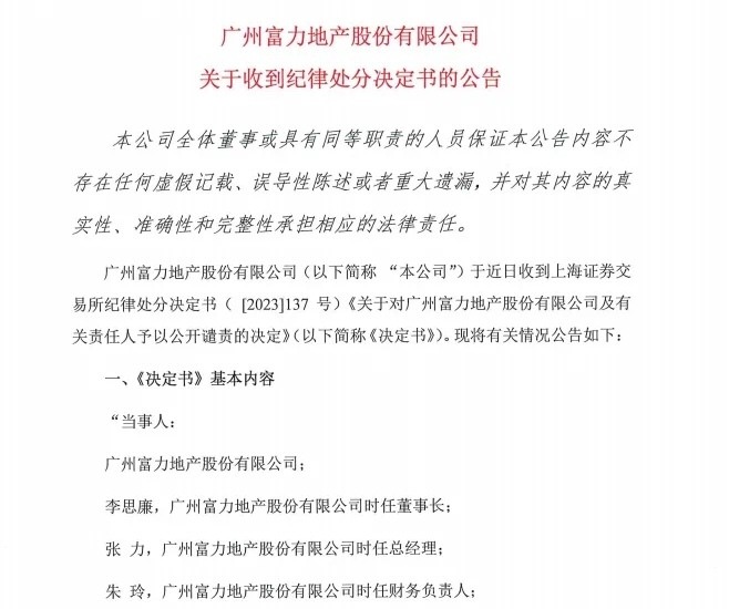 2月21日,富力地产发布公告称,收到上海证券交易所纪律处分决定书。