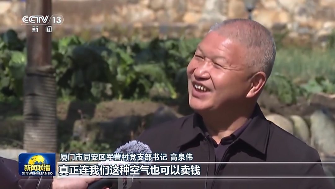 厦门市同安区军营村党支部书记 高泉伟:真正连我们这种空气也可以卖钱,我们茶园所生产的这些碳汇,已经卖出去了两次了。