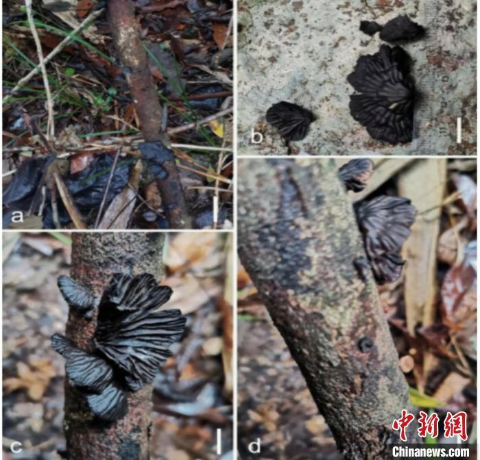 据悉,中华炭褶菌的菌盖近扇形或耳形,幼嫩时为砖红色,表面有放射状沟纹,边缘微卷;菌褶稀疏,菌褶间或内表面磨砂状有黑色炭质颗粒,无菌柄存在,夏秋季生于阔叶树混交林下的枯枝上;目前毒性不明,不建议食用。