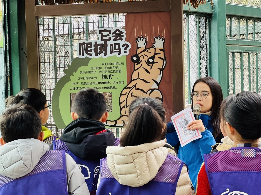 “仔细看看虎掌!”科普讲解员带着孩子们前往动物园的各个角落,跟着“龙有九似”的古人传说,寻找“龙”的踪迹。鱼鳞、鹰爪、虎掌……孩子们在家长的陪同下,跟随科普老师的脚步,来到猛兽区、草食区、飞禽大观、锦鳞苑、盘龙苑等展区一睹“龙颜”,在认真观察各种“龙族”的自然行为和形态特征的过程中,慢慢拼凑出传说里龙的姿态,同步记录下自己的所见、所思、所想。