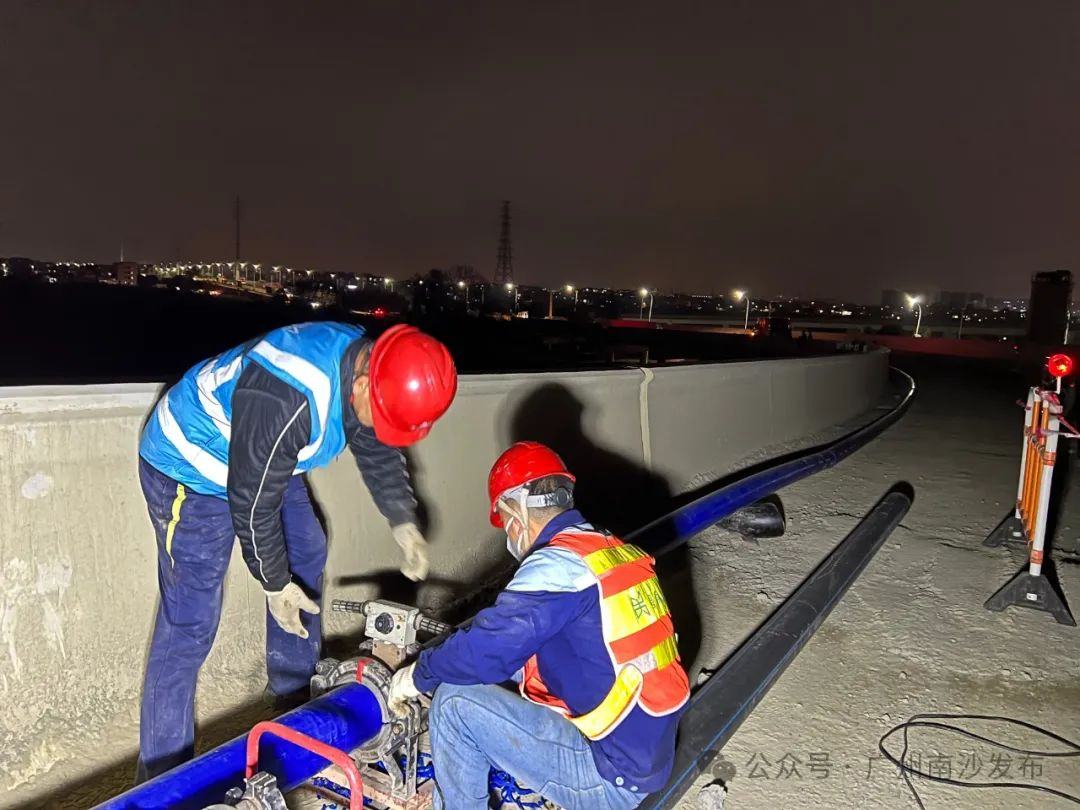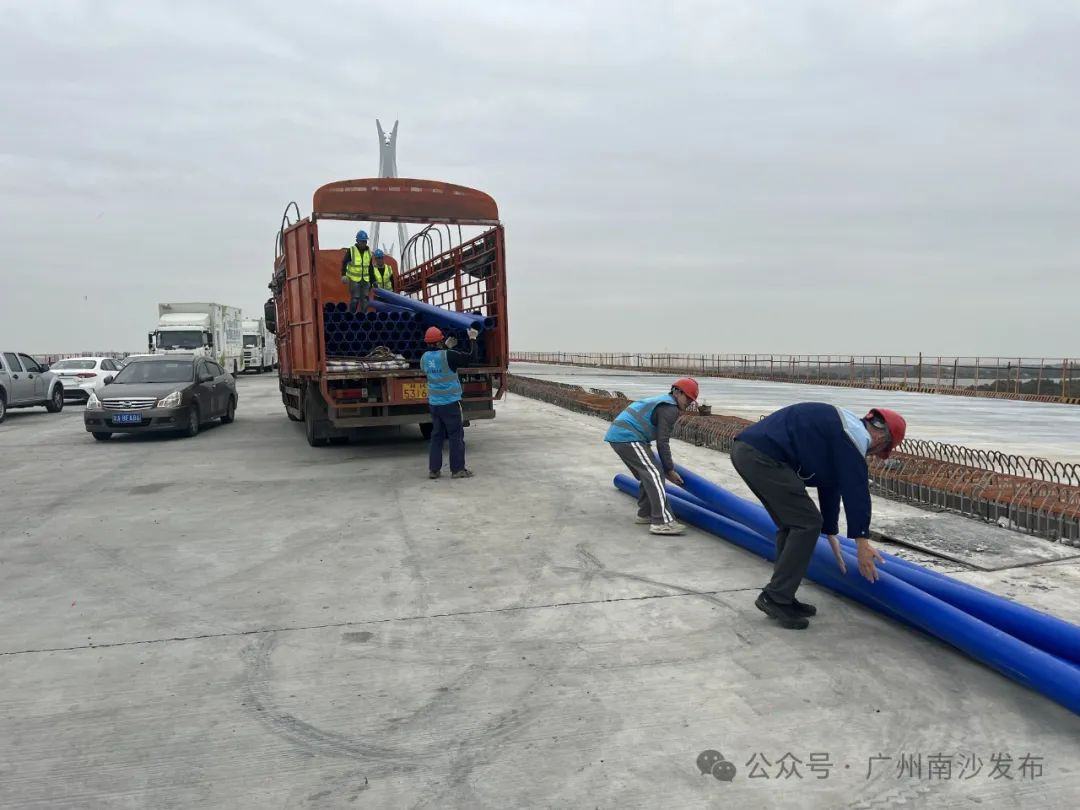 为实现三民岛居民的用水正常,广州南沙粤海水务有限公司迅速启动南中高速应急市政供水管道建设工程,即从万顷沙镇万环西路供水主管开口,设置加压泵,沿在建的南中高速桥面紧急修建一条约3公里的DN160应急管道,与三民岛上的市政供水管道联通。