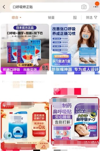 △某购物平台上以“口呼吸矫正贴”作为关键词的搜索结果