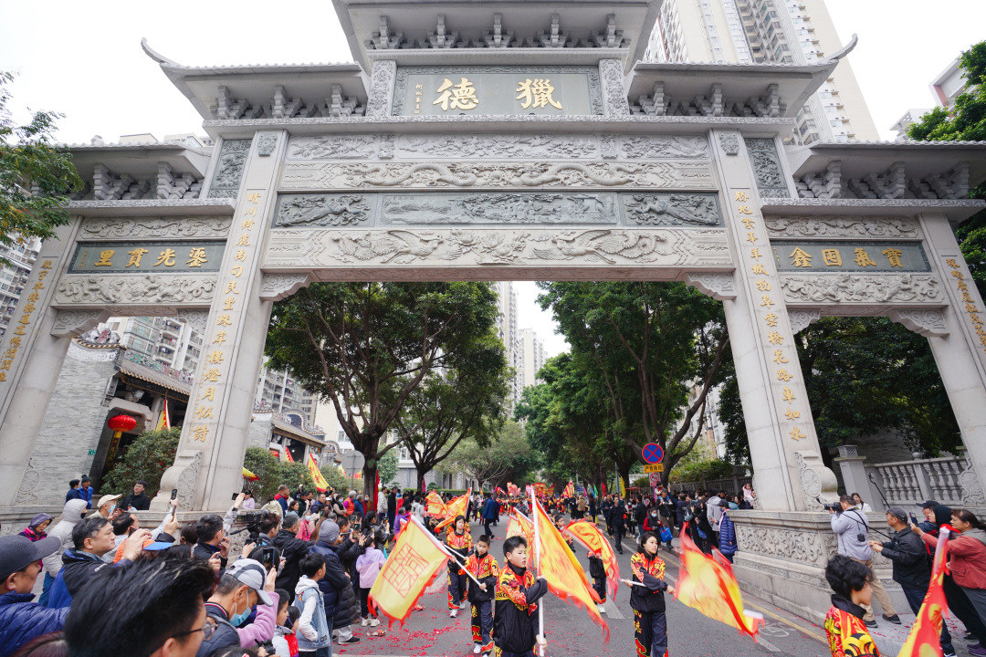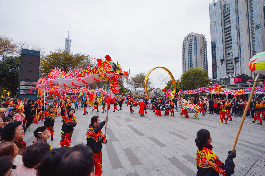 2月25日上午,广州市天河区猎德社区龙腾狮跃,八仙巡游,热闹非凡。除了特色巡游,猎德还邀请广州及珠三角地区友好龙狮团队到猎德进行龙狮交流盛会,以生菜晚宴将活动推向高潮。活动旨在传承中华传统民俗文化,推动乡村振兴高质量发展。