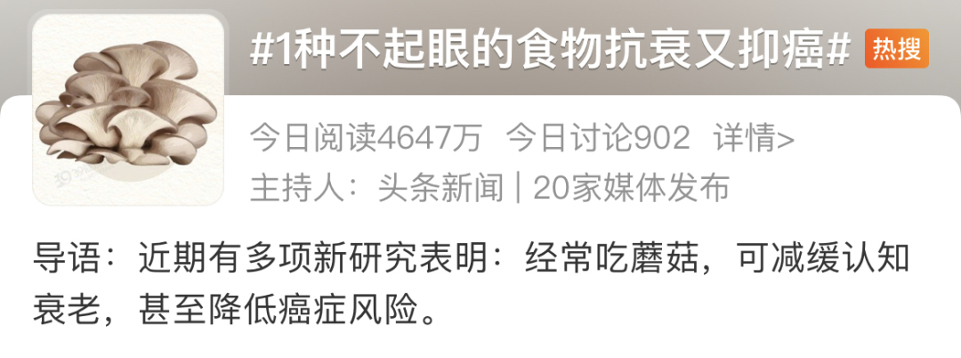 2024年1月,英国雷丁大学研究团队在“Nutrients”期刊发表研究称,每天吃蘑菇12克以上,对情景记忆、前瞻性记忆、阅读能力、执行能力、处理速度等5项认知能力都有正面作用。