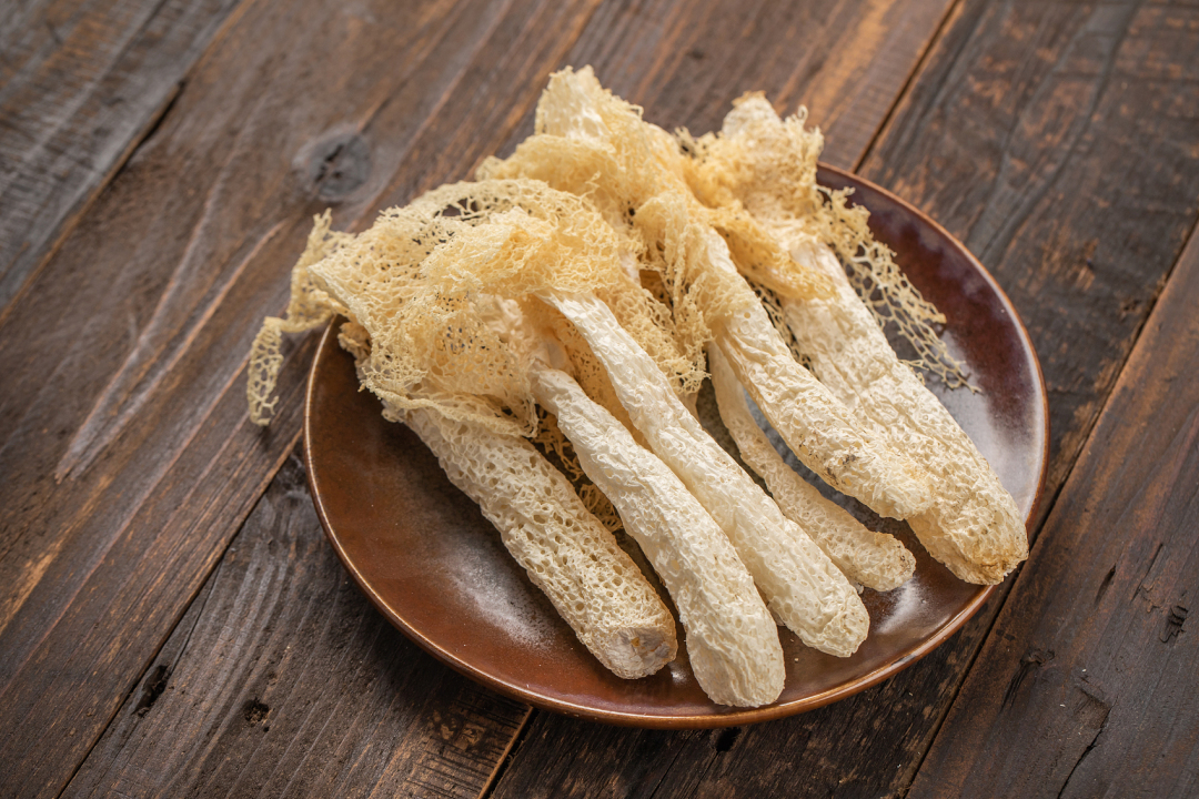 竹荪有“真菌之花”“菌中皇后”之称,也被认为是“草八珍”之一。竹荪含有多种氨基酸、维生素、无机盐等成分。具有补气养阴、润肺止咳、清热利湿的功效。
