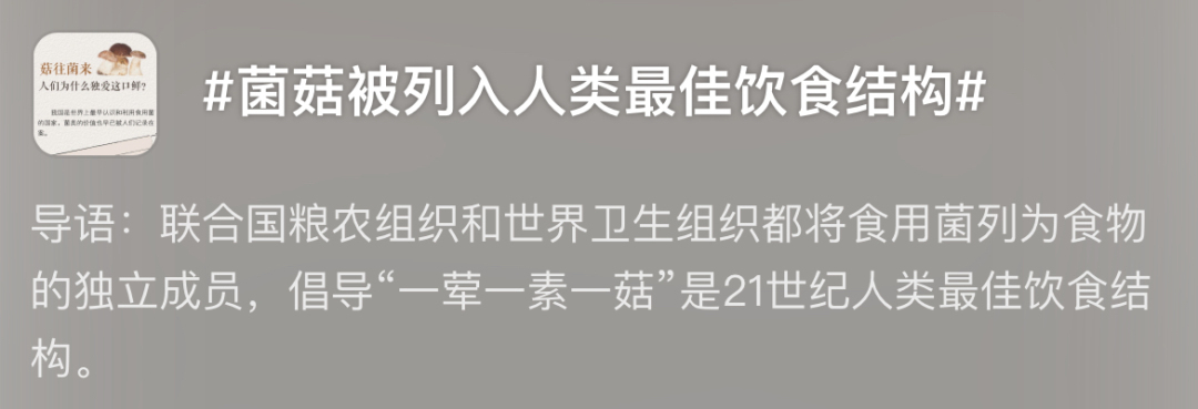 联合国粮食及农业组织曾提出“一荤一素一菌菇”是21世纪人类最佳饮食结构。
