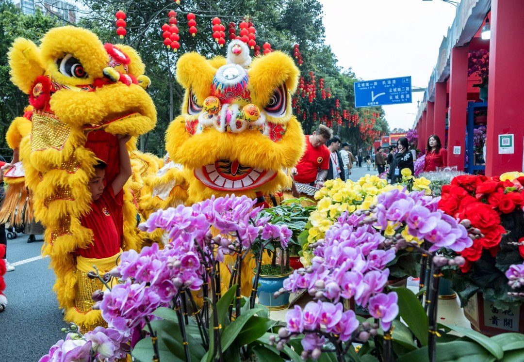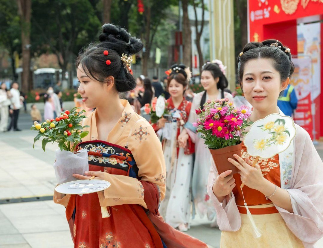 白云区花市办方面介绍,白云花市坚持传承创新,营造喜庆节日氛围。在摊位品类方面,除了传统花市摊位外,还增加了美食、非遗、工艺品、文创、汉服体验等特色摊位,满足市民游客的多样化需求。在文艺汇演方面,主会场设置舞台,举办经典与流行、传统与先锋相结合的表演活动,以及快闪巡游派送礼品等,丰富市民游客的体验。