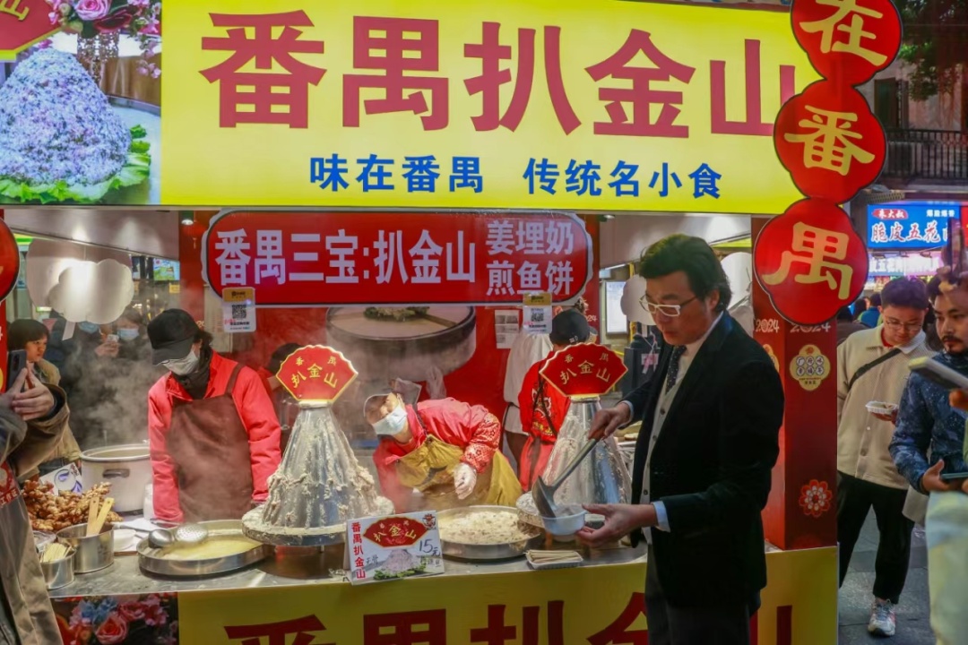 2024广府庙会人气持续火爆,位于广州惠福东路美食花街的美食区2月24日至3月3日每天10:00至22:00举行。美食家庄臣介绍,本次美食区以“越秀烟火·雅俗共赏”为基调,邀请对象为适合以美食节模式进行展示和体验的品牌,精选了20多个饮食品牌,超过100个参展品种参展。